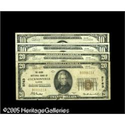 <B>A Group of Small Town Illinois 1929 Nationals</B></I><BR>Jacksonville, IL - $20 1929 Ty. 1 Ayers NB Ch. #5763 Fine, stains, pinholes<BR>Monmouth, IL - $20 1929 Ty. 1 First NB Ch. #4400 VF<BR>Paris, IL - $10 1929 Ty. 1 Edgar County NB Ch. #2100 AU<BR>Paris, IL - $10 1929 Ty. 1 First NB Ch. #3376.<BR> 4 notes Lot:16863