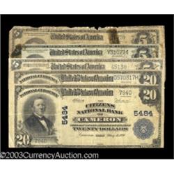 <TABLE cellSpacing=0 cellPadding=0 width="100%" bgColor=#000000 border=0><TBODY> <TR><TD width="100%"><TABLE cellSpacing=1 cellPadding=3 width="100%" border=0><TBODY><TR><TD width="100%" bgColor=#79735c><FONT face=arial color=#ffffff size=3><B>Description</B> </FONT></TD></TR><TR><TD width="100%" bgColor=#ffffff><FONT face=arial size=2><B>A Group of Texas Nationals with Considerable Experience</B></I><BR><B>Cameron, TX -</B></I> $20 1902 Plain Back Fr. 659 <B>Citizens NB</B></I> <B>VG,</B></I> corner missing<BR><B>DeLeon, TX -</B></I> $5 1902 Plain Back Fr. 598 <B>Farmers and Merchants NB</B></I> Ch. # 7553 <B>G-VG,</B></I> ragged borders<BR><B>El Paso, TX -</B></I> $5 1902 Plain Back Fr. 607 <B>First NB</B></I> Ch. # 2532 <B>G-VG</B></I><BR><B>Greenville, TX -</B></I> $5 1902 Date Back Fr. 592 <B>Greenville Natl Exchange Bank</B></I> Ch. # (S)8581 <B>VG,</B></I> stains, corner missing<BR><B>Stamford, TX -</B></I> $20 1902 Plain Back Fr. 659 <B>First NB</B></I> Ch. # (S)5560 <B>VG,</B></I> corner missing<BR><I>Examination of this lot is recommended. There will be no returns for any reason.</B></I> (300-600 ) (5 notes) </FONT></TD></TR></TBODY></TABLE></TD></TR></TBODY></TABLE><BR><TABLE cellSpacing=0 cellPadding=0 width="100%" bgColor=#000000 border=0><TBODY><TR> 5 notes Important notice: Heritage usually auctions material at the rate of 200-250 lots per hour. On some occasions eBay Live bid software or the Internet may not be able to keep up with the pace of the auction. We recommend placing a realistic absentee bid now as insurance to avoid disappointment. Occasionally the auctioneer may eliminate or reject an eBay Live bid, and the auctioneer may also reopen a lot after the close of the eBay live bidding (usually because we missed an audience bid), and may reject your bid even if it shows you as the winning bidder. By bidding via eBay Live, you agree that Heritage may award the lot to another bidder at its sole discretion under the circumstances described above or any other reasonable circumstances. Also please note that all Heritage lots purchased through eBay Live carry a 20% Buyer's Premium. Please make sure you read the Terms and Conditions before you bid.</TR></TBODY></TABLE>