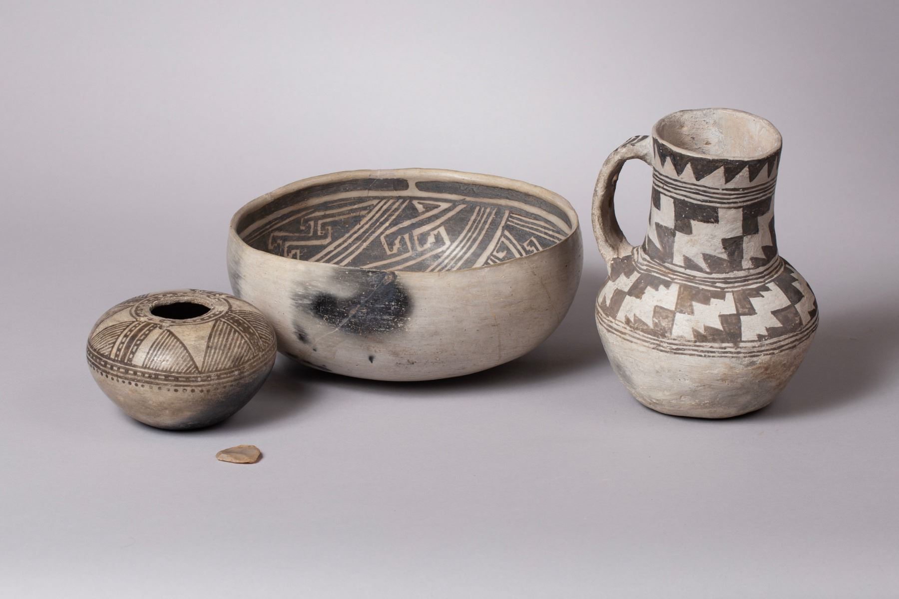A Group of Three Ancestral Puebloan Pottery Vessels, including a Rare Chaco Keyhole Jug
