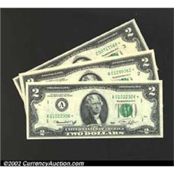 A Group of Three Star Notes, all 1976 $2 Federal Reserve Notes: Fr-1935-A*, B*, and C*, all grading Gem CU. 3 notes