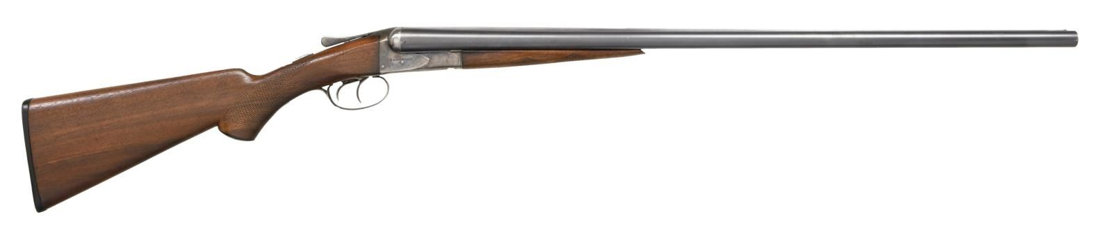Cal. 16 GA. S# 362985. Bbl 28". Case color hardened frame stamped "STERLINGWORTH" on either side with tang safety and wavy line engraving. Blued barrels are stamped "STERLINGWORTH FLUID COMPRESSED STEEL" and "MADE BY A.H. FOX GUN CO. PHILA. PA. U.S.A.", with solid matte rib and aluminum bead sight. Checkered plastic capped pistol grip buttstock, with checkered splinter pattern forend. LOP: 14 1/4". UNATTACHED ACCESSORIES: unmarked generic green transit case. CONDITION: frame retains good amounts of its case color hardened finish, exhibiting wear overall that shows through to gray patina. Barrels retain the majority of their blue finish, exhibiting light thinning, mild wear, and some scattered superficial marks from handling and storage. Mirror bores, exhibiting some scattered spots of surface oxidation. Wood furniture shows some scattered marks and minor impressions from handling and storage, with a small loss present at the toe of the buttstock. (23-1797/MLW). CURIO. $500-800.