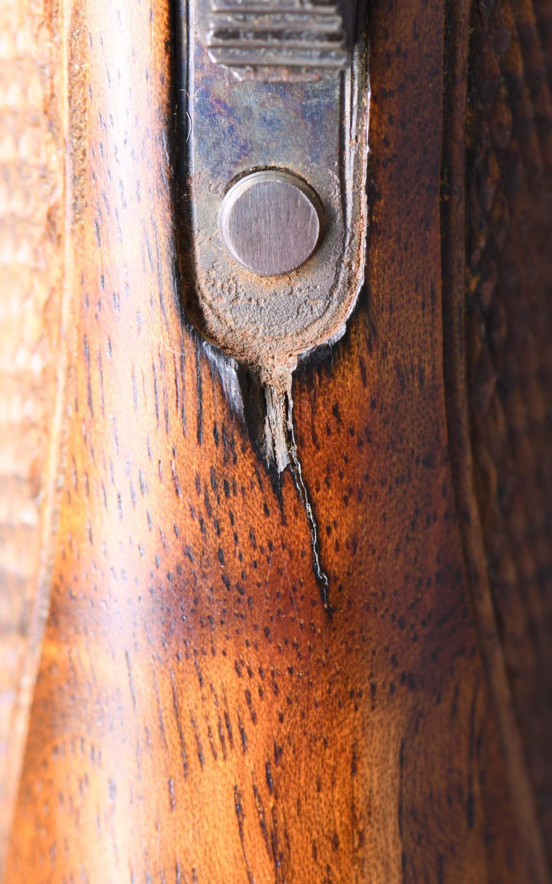 Fair: Little to no original finish, minor or small major parts replaced, light to moderate pitting externally, functional mechanics, fair bore with heavy pitting but visibly rifling. Poor: No original finish, possibly some major parts replaced, loose but functional mechanics, active or heavy external rust, poor bore with heavy pitting and little or no rifling visible.