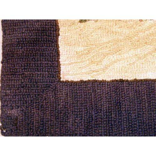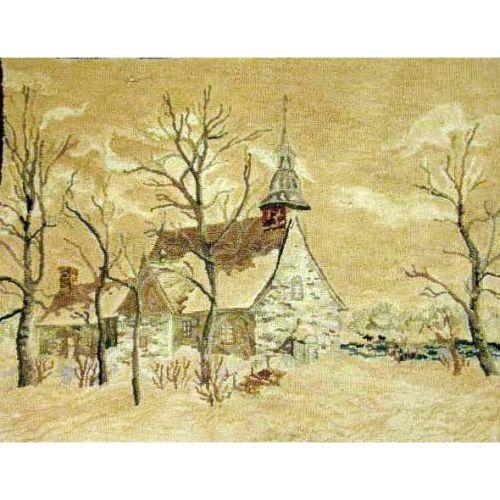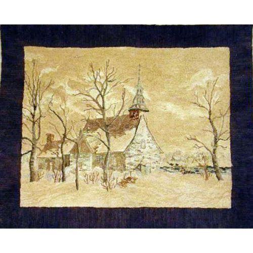 A HAND HOOKED RUG<BR><BR>Depicting a church in a winterscape, discoloration, 30-1/2"l x 37"w