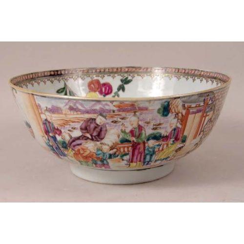A HAND-PAINTED CHINESE PUNCH BOWL<BR><BR>5" high x 10 1/2" deep.