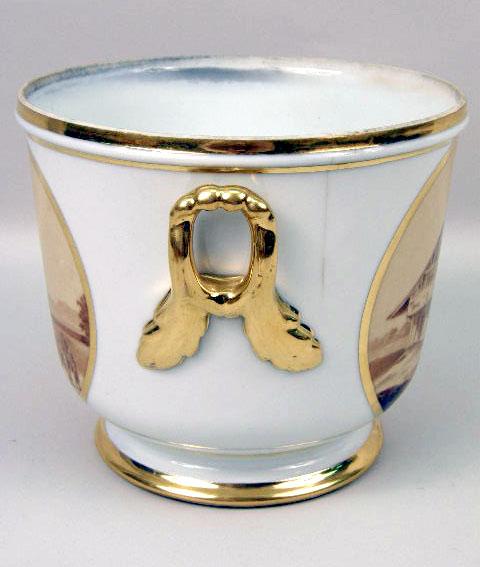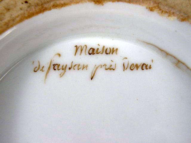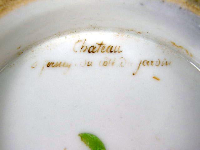 French, depicting "Chateau", "Garden" and "Peasant House". Crack on rim.