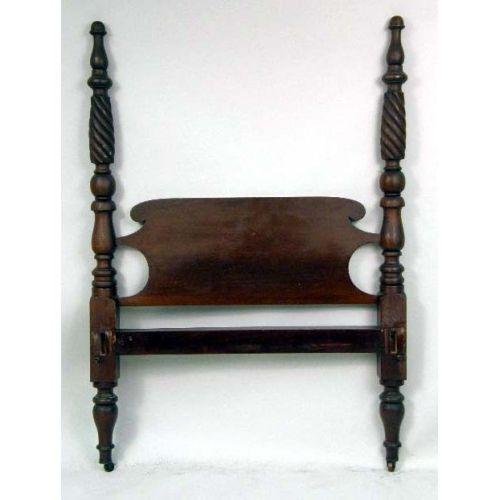 A HEAD- AND FOOTBOARD FROM A SINGLE-SIZE TESTER BED<BR><BR>40" h x 41" w.