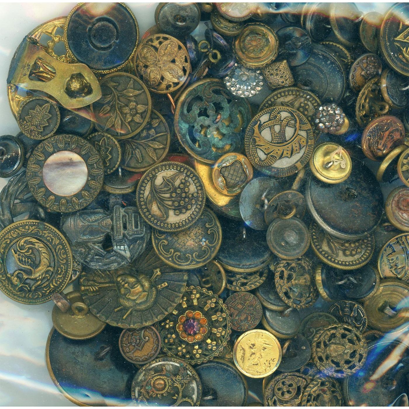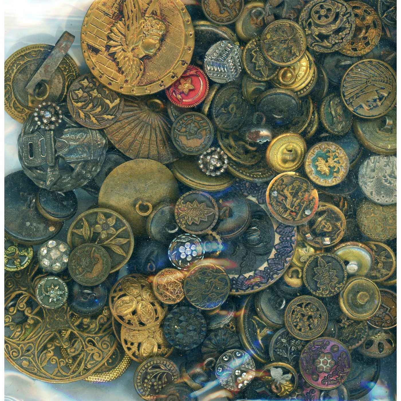 Assortment of various metal buttons of the 19th & 20th centuries. This is a great lot of assorted metals with lots of picture buttons and some designs. Great for both the collector and designer or creator. The images show front and back of the bags in order to show the variety in the bag.