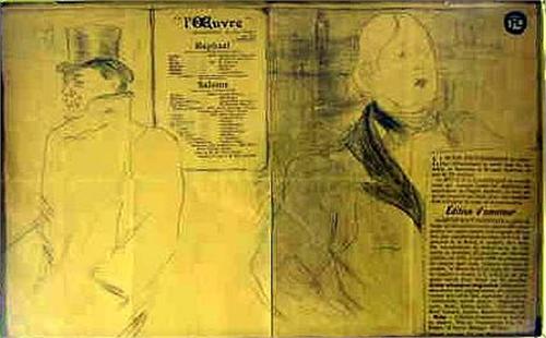 A HENRI DETOULOUSE-LAUTREC THEATER PROGRAM LITHOGRAPH; For the production, "Oscar Wilde Et Romain Coolus", lithograph done in 1896, an impression of the fourth state of four, Henri Toulouse-Latrec (French 1864-1901), 12" x 19-1/2", matted and framed