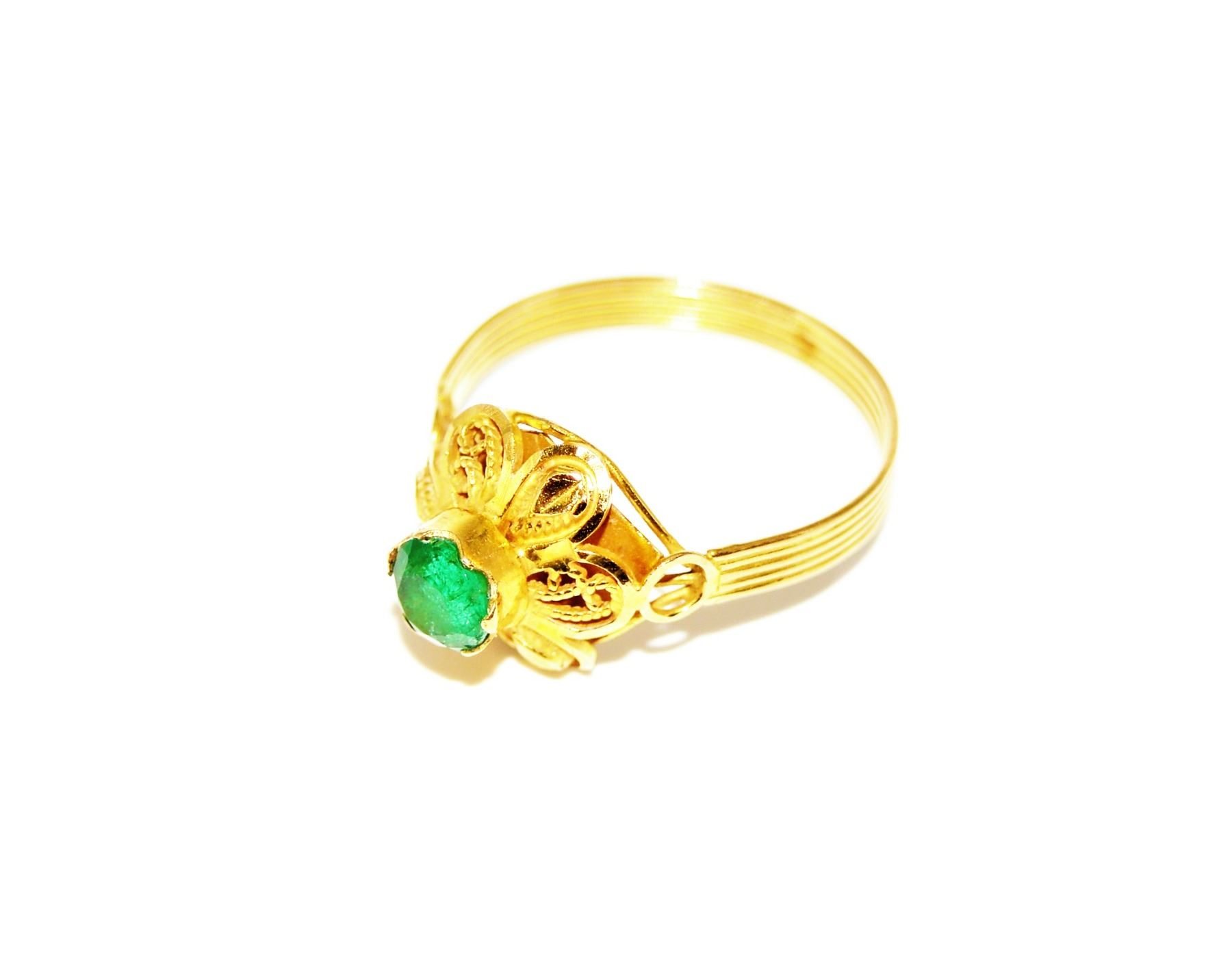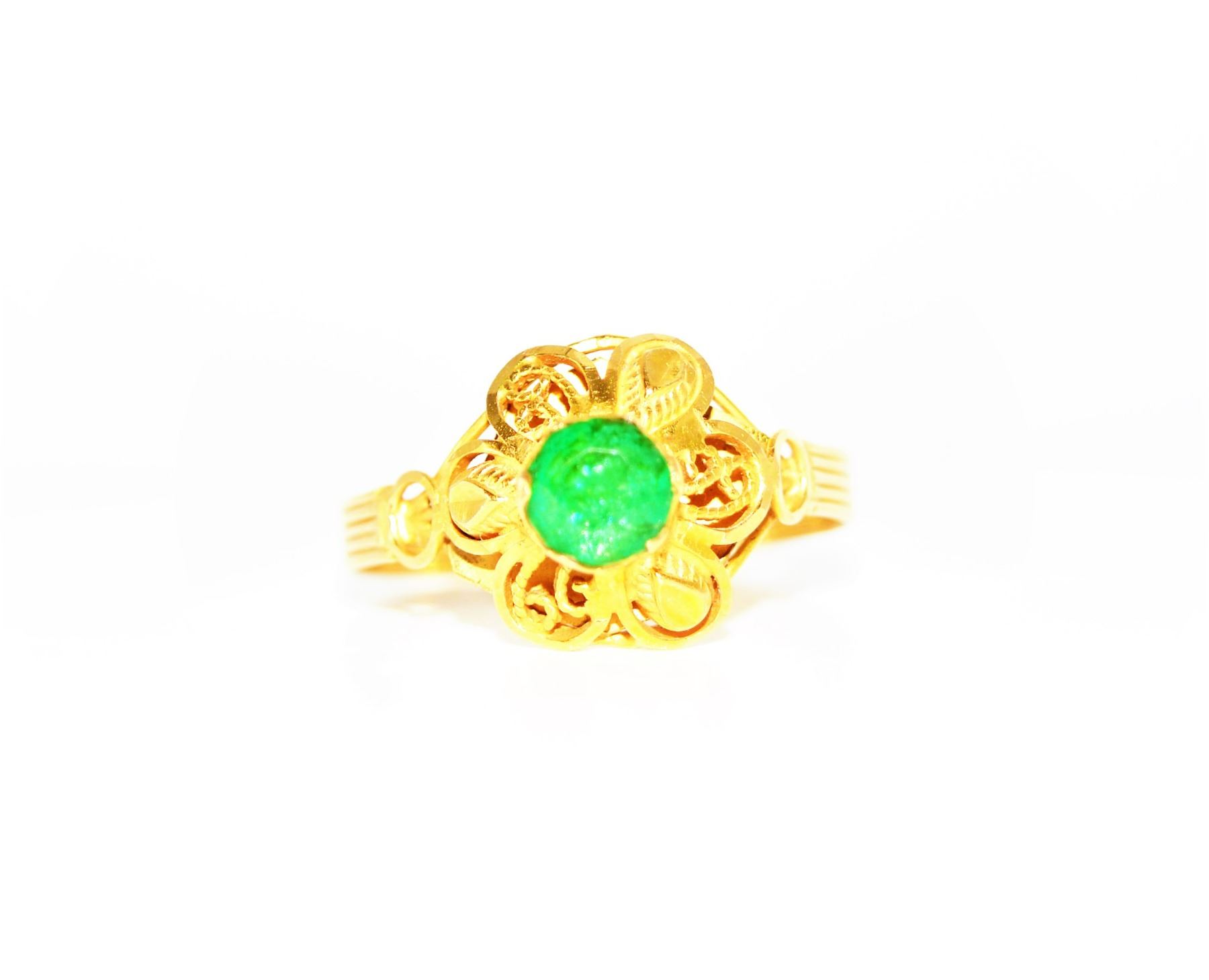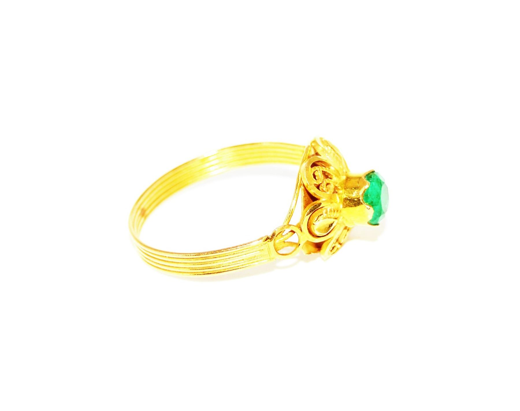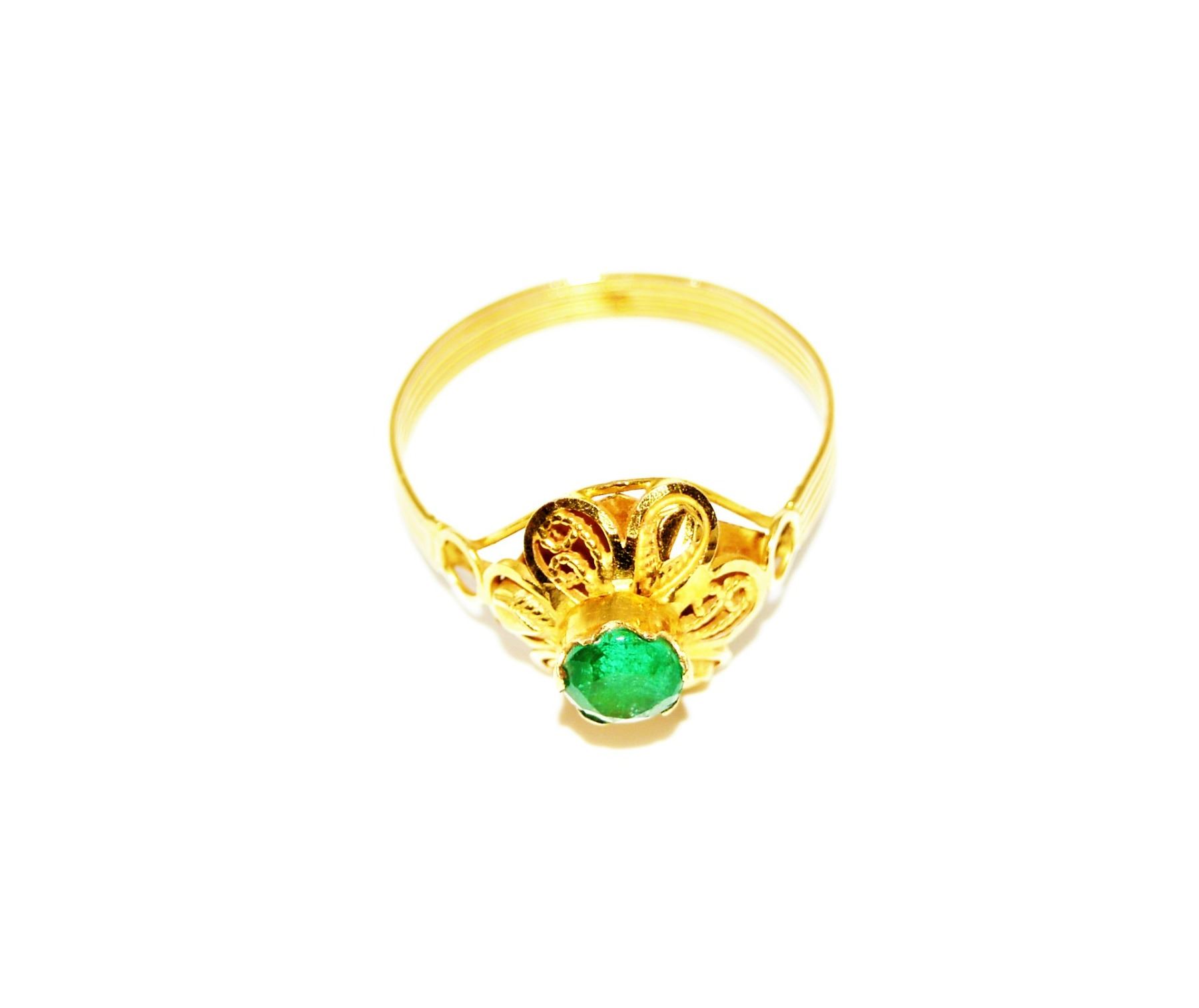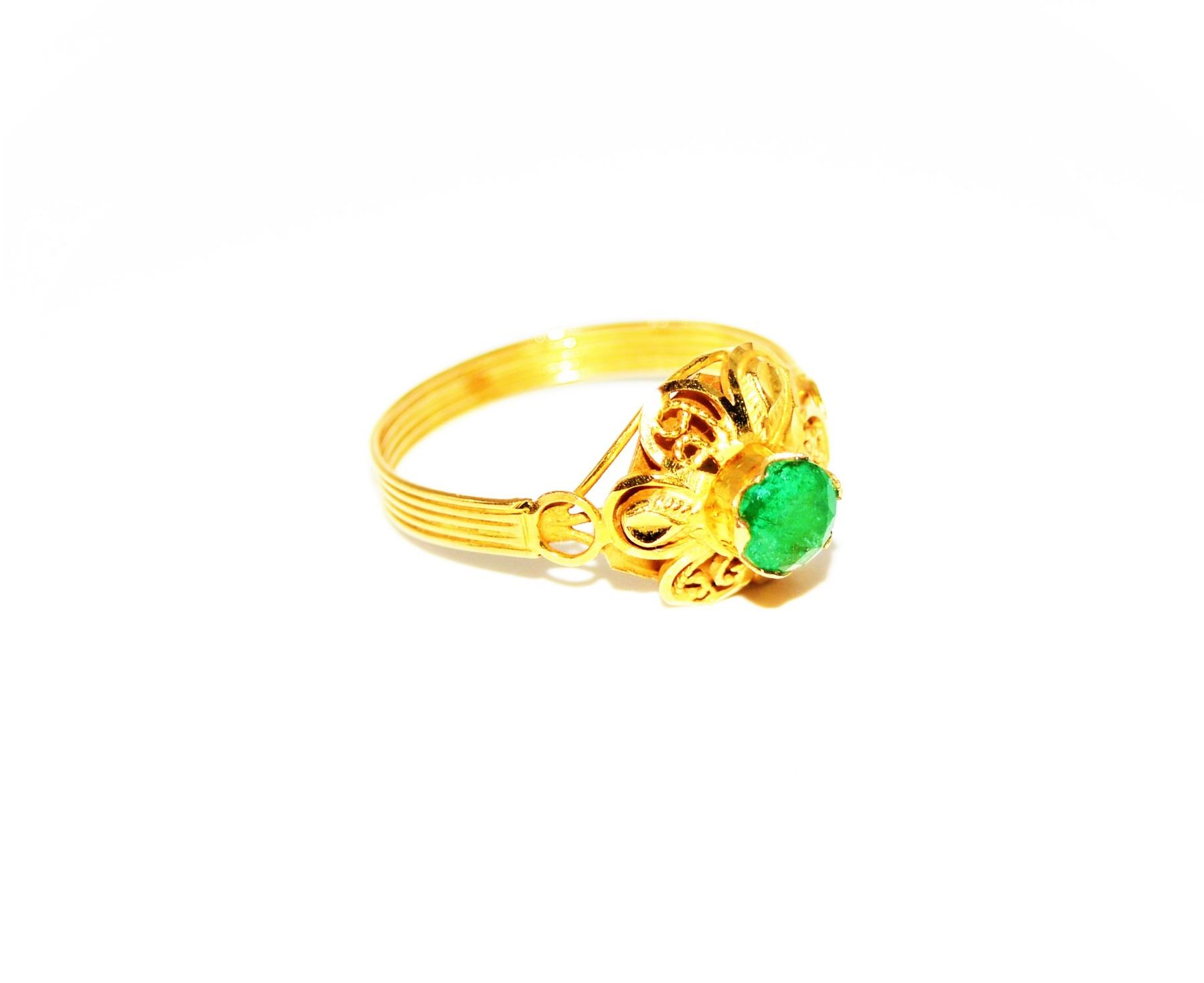 A HIGH QAULITY CUT GREEN EMERALD SET IN A SOLID GOLD RING. Of Great Color Emerald and Solid 24K Gold Ring.
