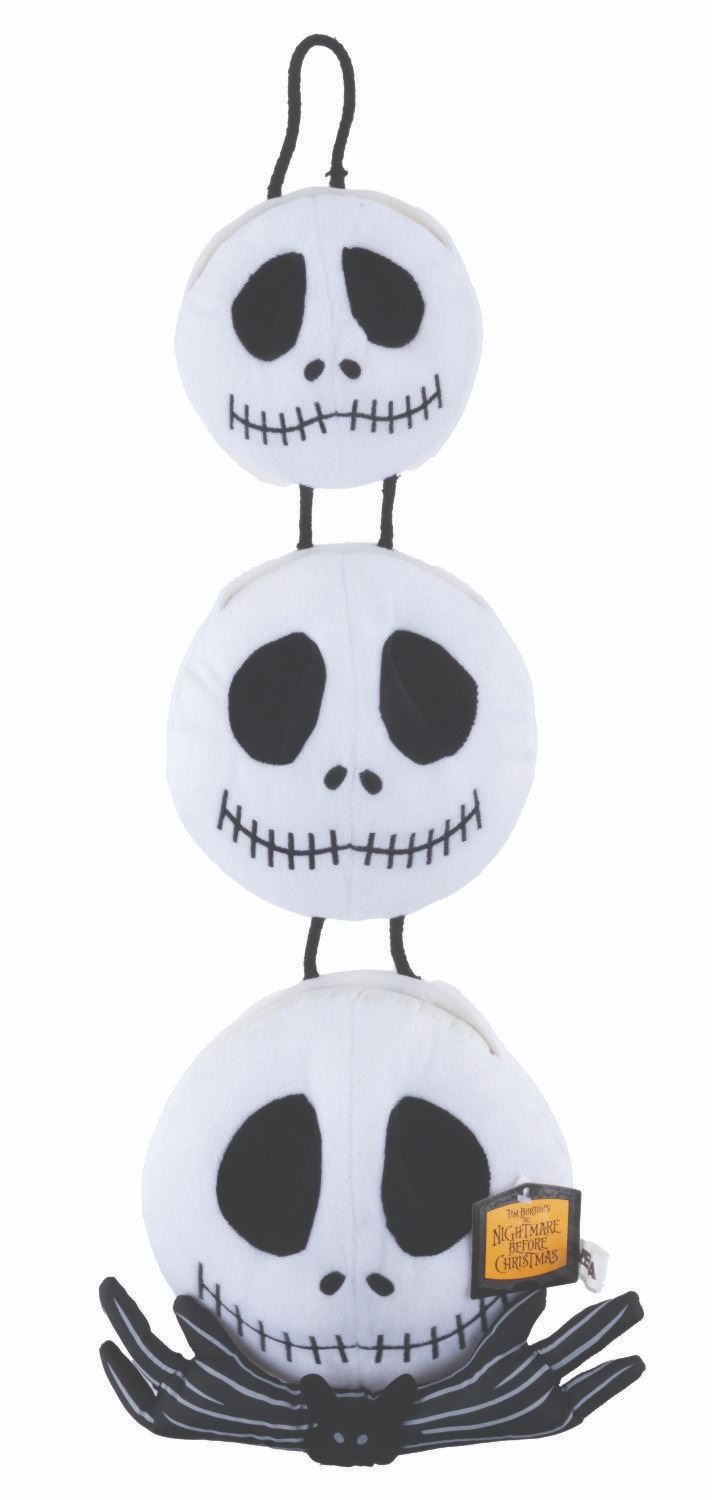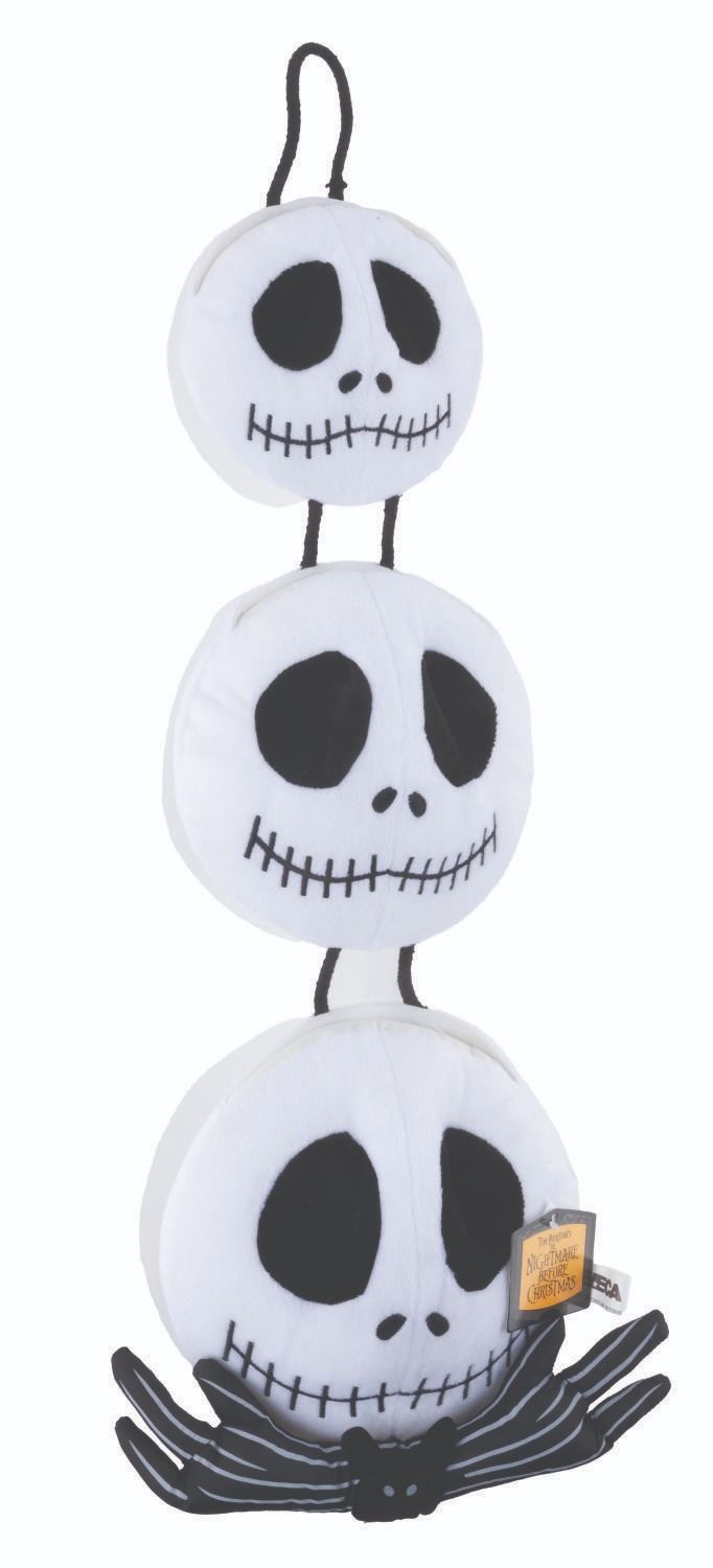(NECA, 2005) A Hanging Jack Heads plush decoration. Each Jack Skellington face has a pocket in the back. Measuring 9.5" x 22", the decoration is in fine condition.