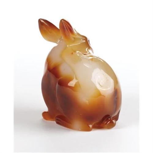 <B>A Hare and a Cockerel<BR></B></I>Unknown maker<BR>Carnelian<BR>6 inches high x 6.5 inches wide (each)<BR> <BR>Each realistically carved from fine mottled stone, on wood stands.<BR><BR>Provenance:<BR>Property of the Fowler Museum<BR><BR><BR><b>Shipping:</b> Requires 3rd Party Shipping (<a target="_blank" href="http://www.heritageauctions.com/common/shipping.php">view shipping information</a>)