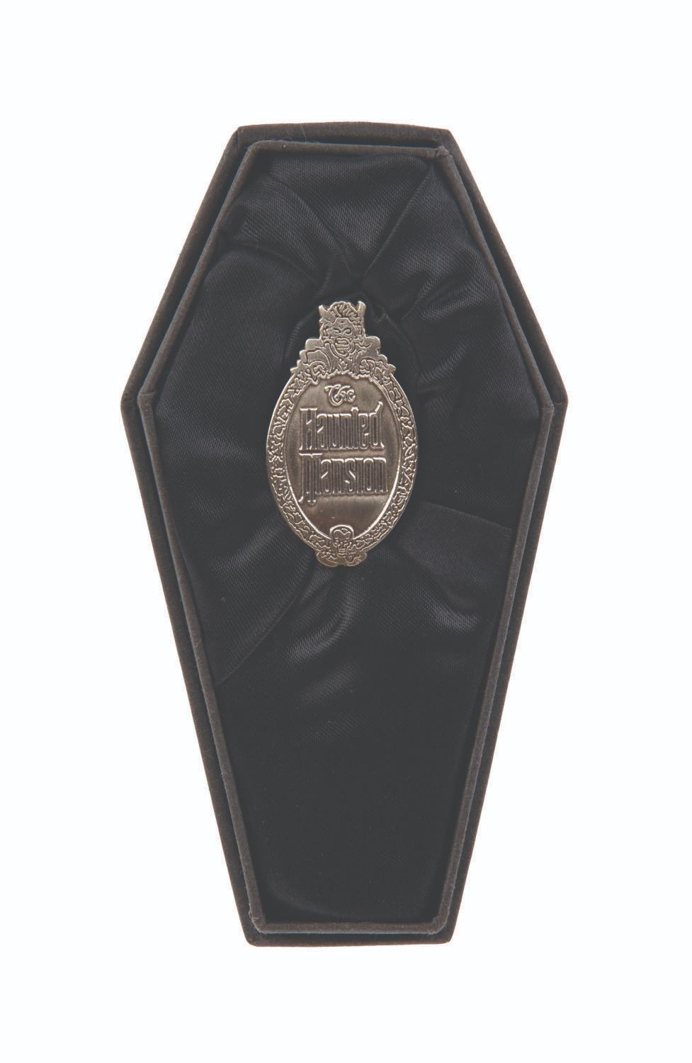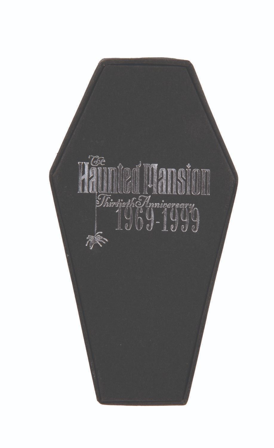 (Disneyland, 1999) A Haunted Mansion 30th Anniversary pin released in a limited edition of 1,969, exclusively on June 26, 1999. Measuring 1.5" x 0.75", the pin and the original coffin-shaped box both display in fine, as-new condition.