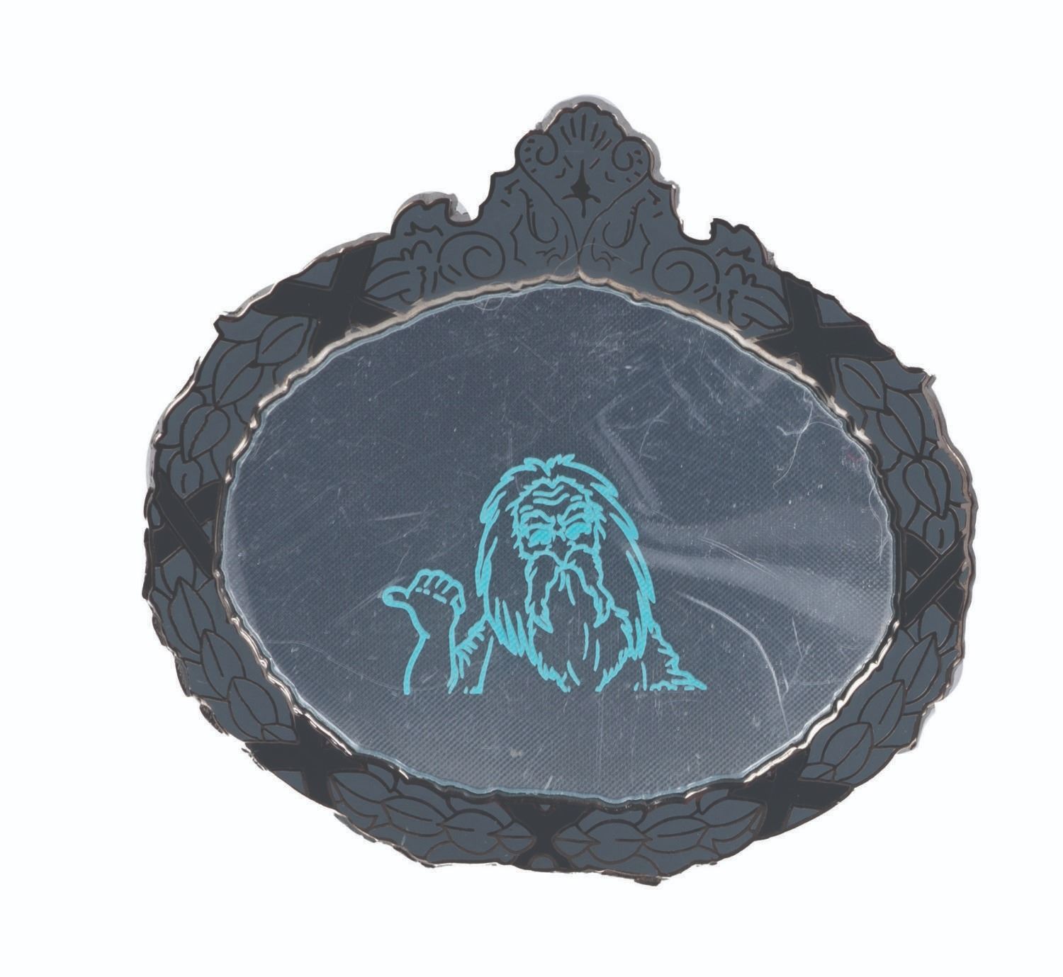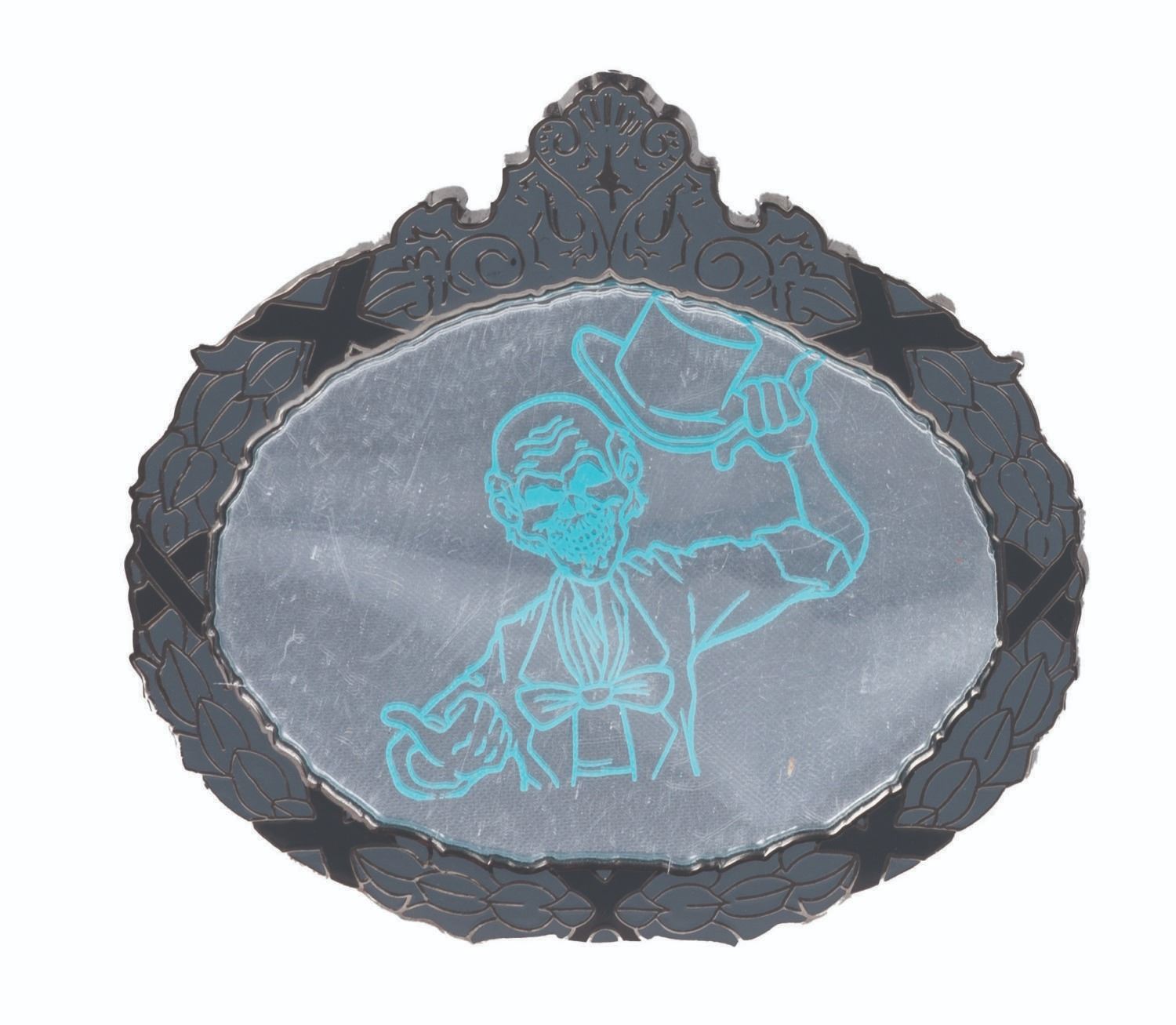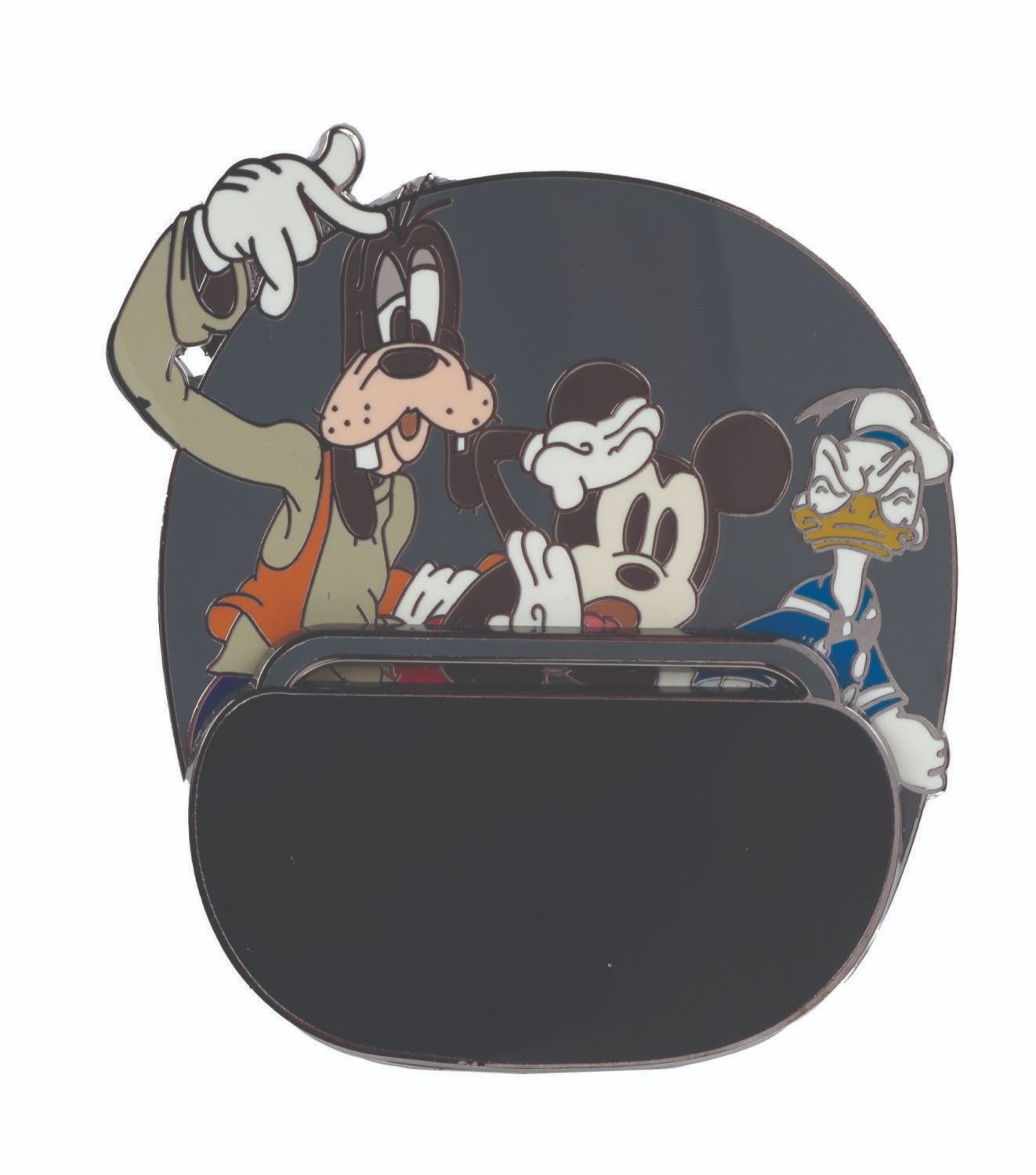 (WDI, 2005) A Haunted Attraction Collection 4-piece pin set released exclusively for Walt Disney Imagineering. The pins featuring the Hitchiking Ghosts, Mickey, Donald and Goofy, are displayed on a diorama with sliding action. Measuring from 2.5" x 2" to 2" x 2", the pins and diorama display in fine as-new condition.