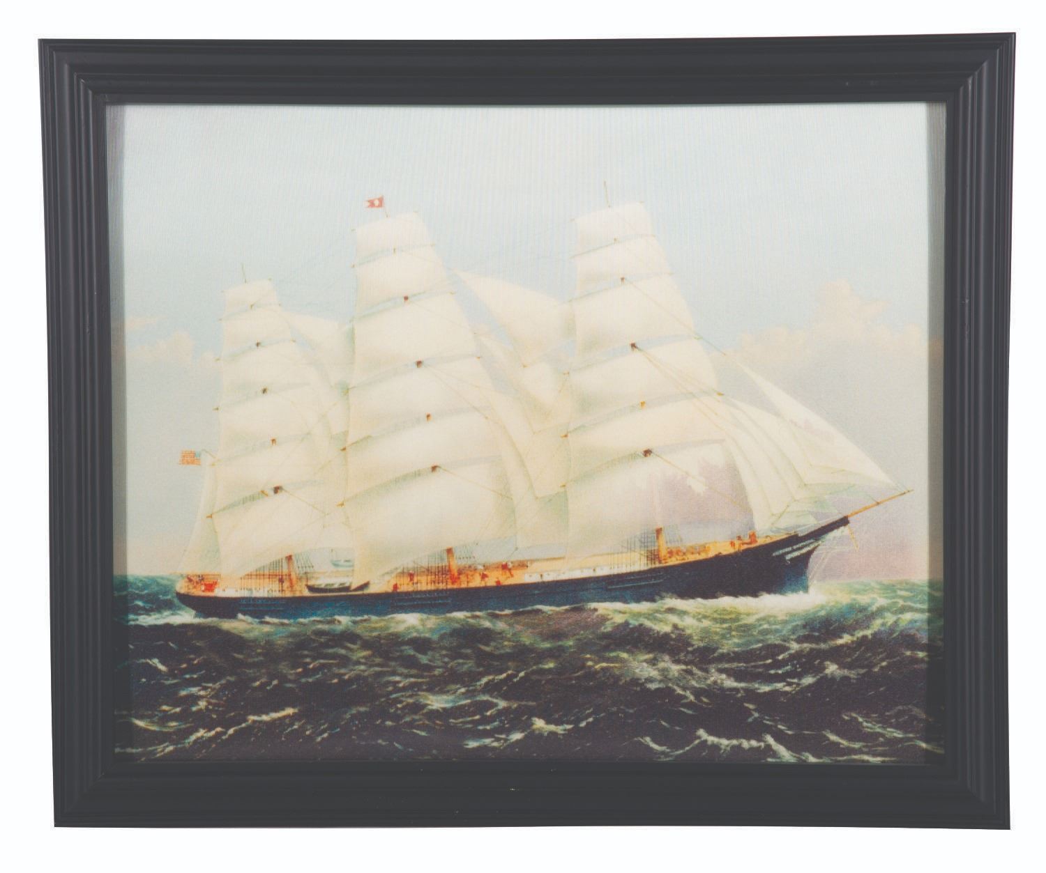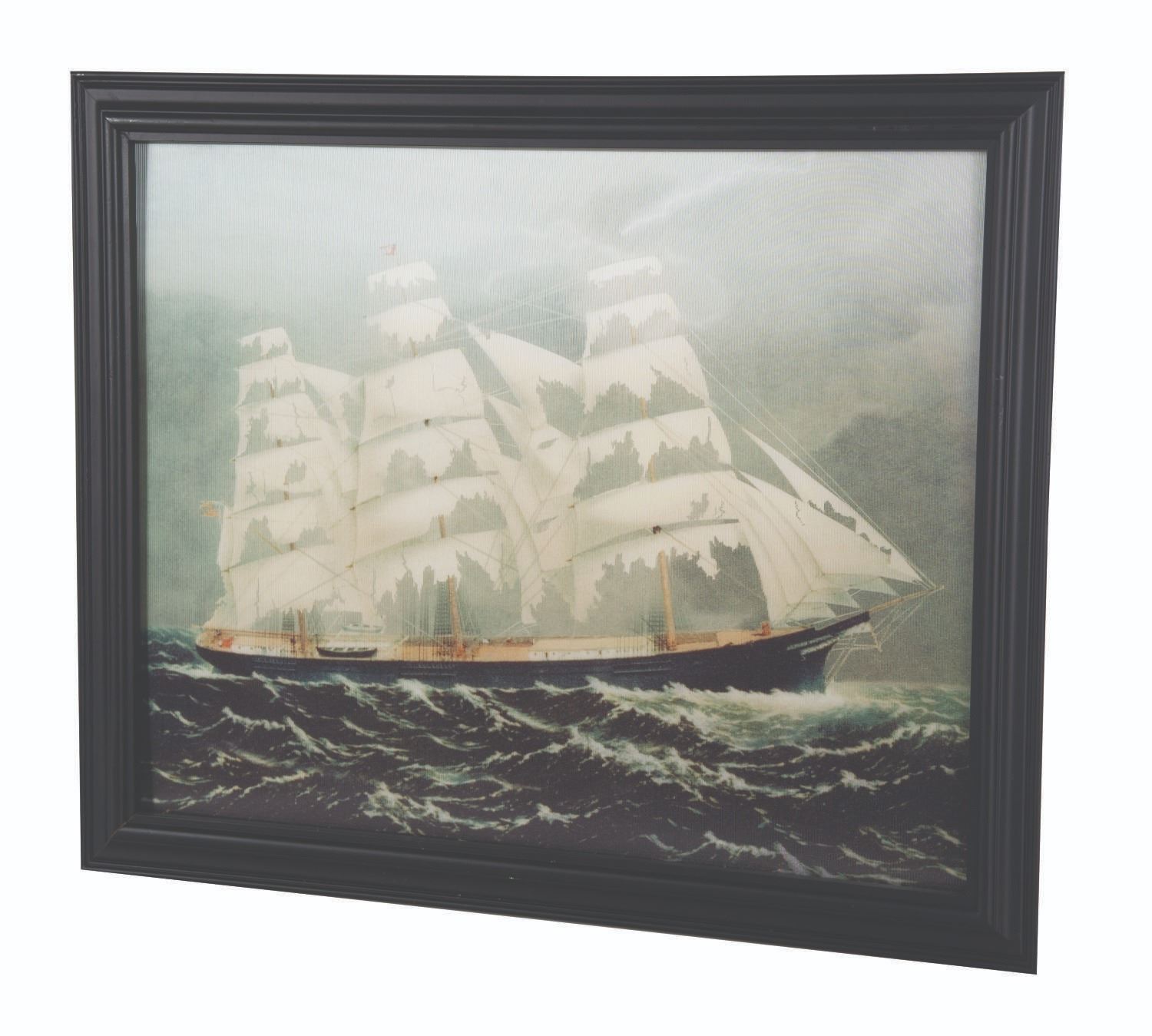 (Disney) A Haunted Mansion Flying Dutchman Ship lenticular portrait, recreating the memorable changing painting from inside the attraction. Measuring 22.75"x18.75", the piece is in very good condition with light fading and wear to the frame.