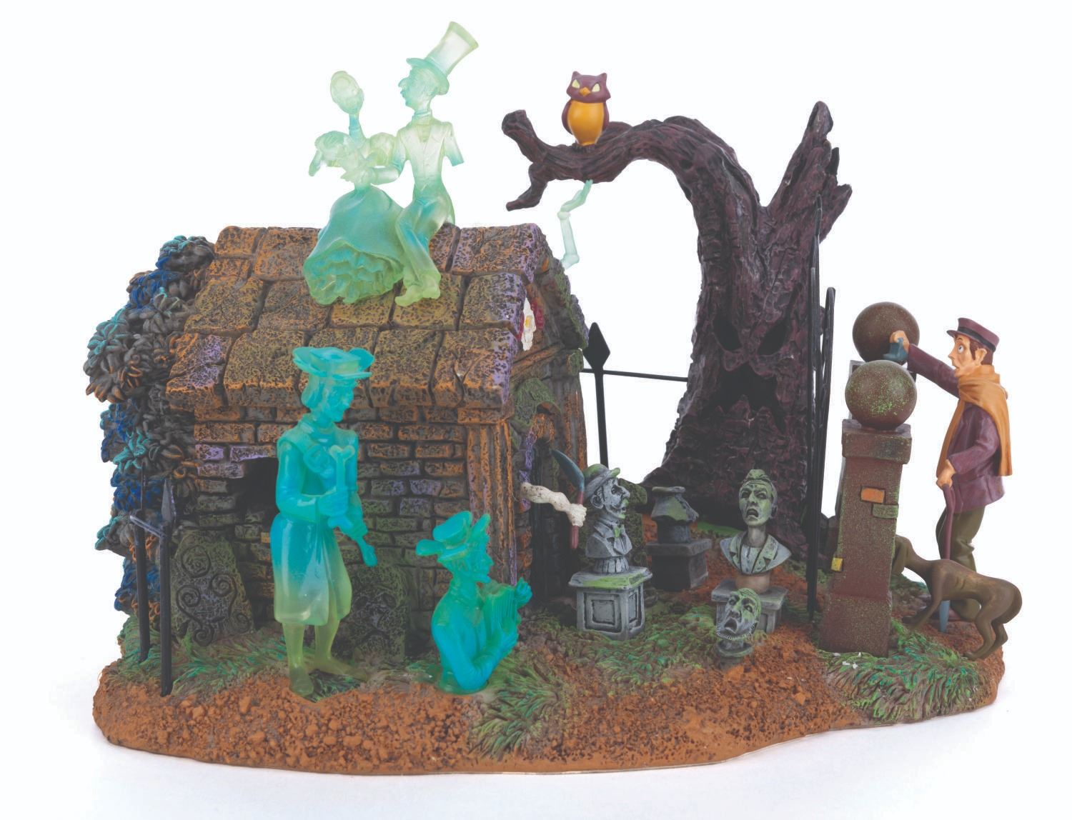 (Disney) A Haunted Mansion Graveyard statue depicting the Caretaker and his dog with an illuminating tree and lantern. Measuring 6.75" tall and 8.75" at its widest point, the piece is in fine condition with light wear. This delicate piece is rarely found in this complete condition.