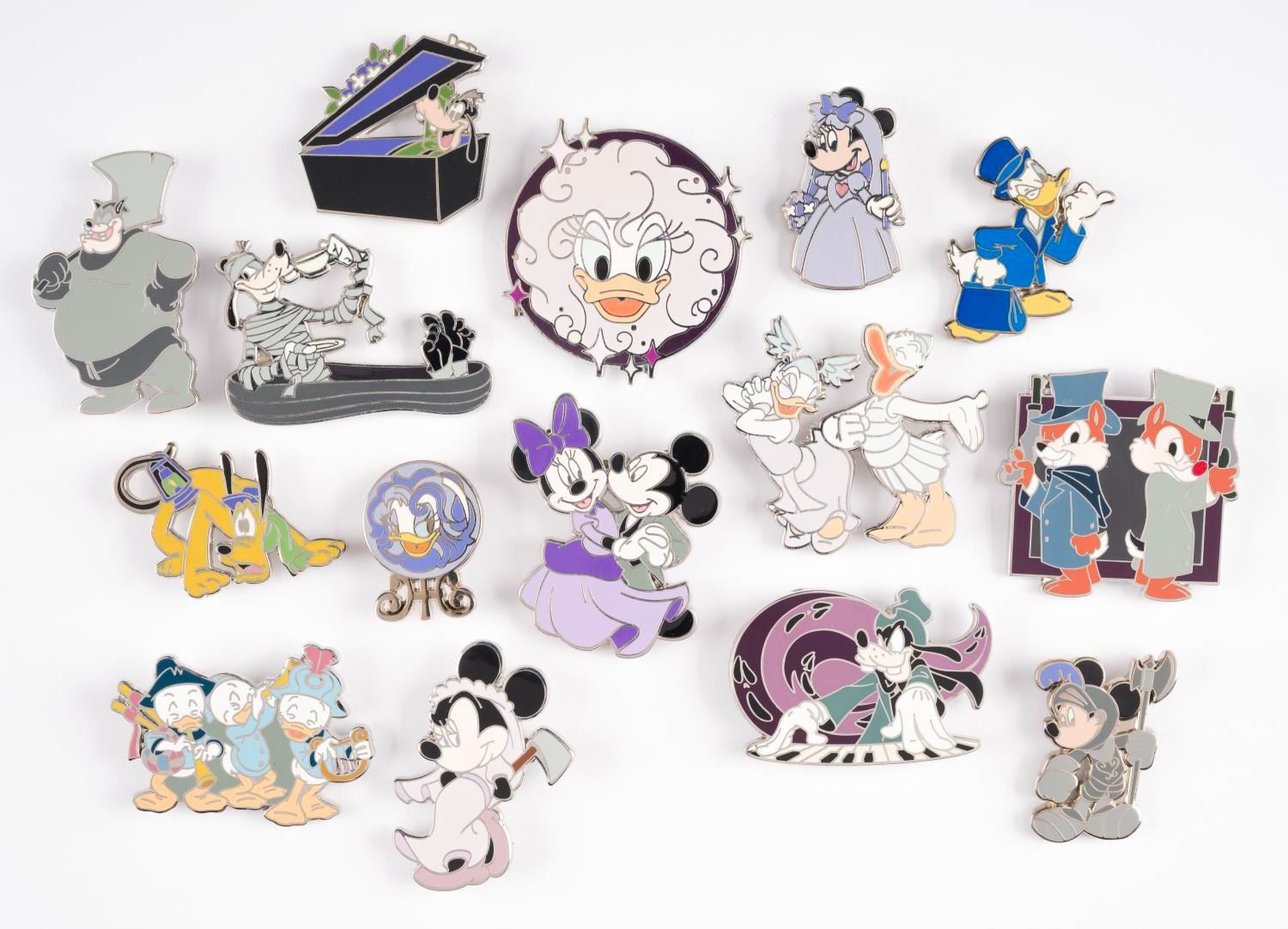 (Disneyland/Walt Disney World, 2008-09) A collection of 15 Haunted Mansion Mickey and Friends pins, including a complete set of nine 2008 series and six 2009 series character pins. Each pin is in fine condition with few signs of wear from handling or age.
