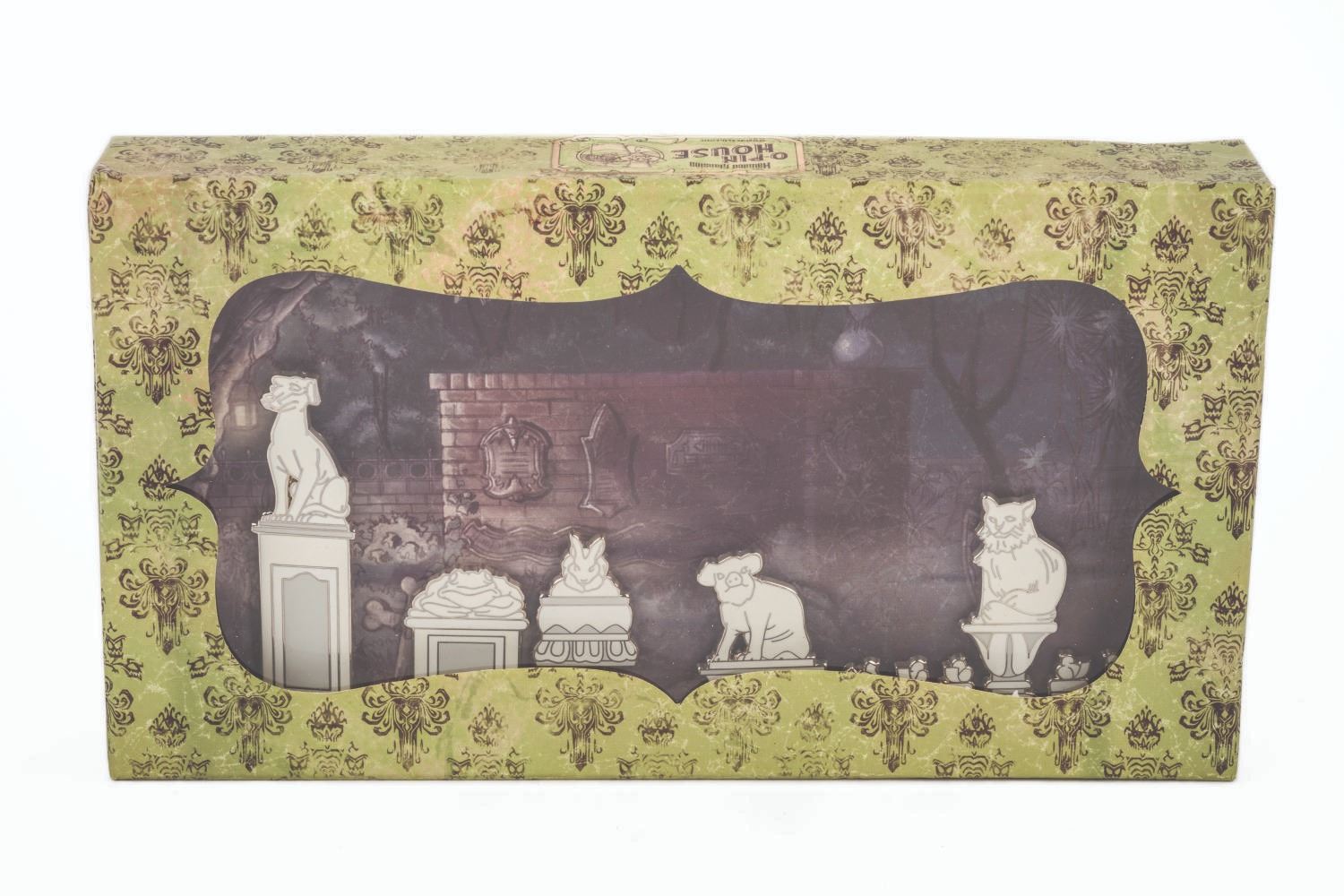 (Disneyland, 2009) A Haunted Mansion O-Pin House Pet Cemetery Tombstone five pin set, designed by artist Tyler Dumas and limited to an edition of 250. Measuring from 1” x .75” to 2.75” x .75”, the pins are in fine condition with the original graveyard scene box.