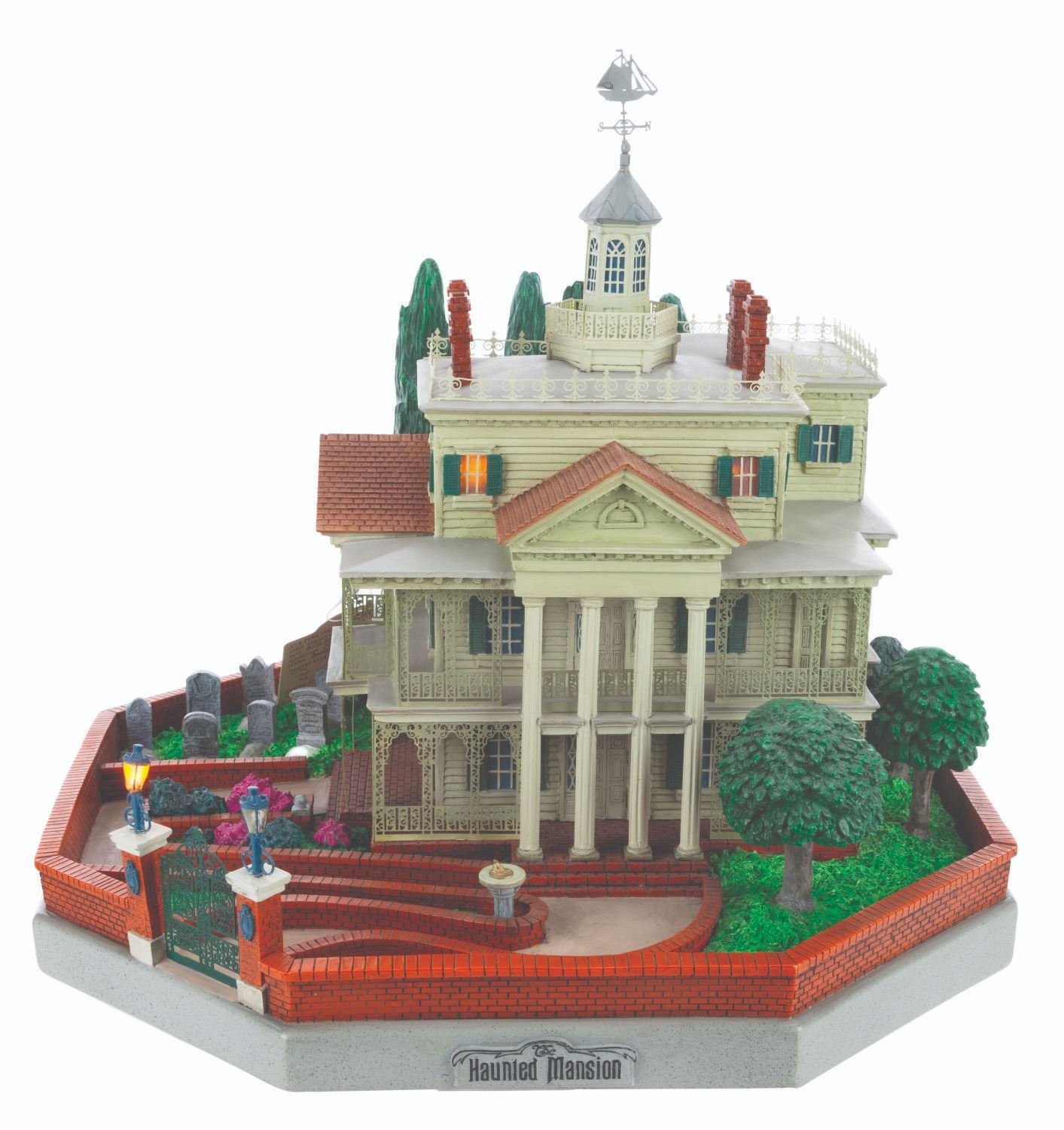 (Disneyland, 2004) An original prototype for Imagineer Larry Nikolai's Haunted Mansion "Magical Big Figurine." This figure was created to celebrate the 35th anniversary of the Mansion, featuring lights and sounds based on the attraction. This production sample bears a tag labeled "Prototype Number One," and has several details slightly different from the finalized version. Four clickable tombstones light up and make sounds when pressed, but the spooky sounds are not specific to the Mansion. With three "AA" batteries (not included), the sound functions operate, though not very clearly, and the lights in the top-floor windows and gate glow, all functioning when tested, with the right side gate light loose. From the collection of Nikolai himself and signed on the base, the figure measures 15" x 15" x 15". The prototype is in very good production-used condition, with the gate lamps slightly crooked. This item requires special shipping arrangements. Please inquire before bidding.