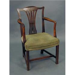 A Hepplewhite period elm armchair with a pierced splat and stuff over seat Est.100/150
