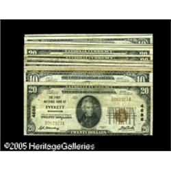 <B>A Hoard of Washington State 1929 National Bank Notes</B></I><BR>Everett, WA - $20 1929 Ty. 1 First NB Ch. #4686 Very Fine<BR>Seattle, WA - $10 1929 Ty. 1 First NB Ch. # 11280 (3) Fine, Very Fine (2)<BR>Seattle, WA - $10 1929 Ty. 2 First NB Ch. #11280 (2) Fine, Very Fine<BR>Seattle, WA - $20 1929 Ty. 1 First Seattle Dexter Horton NB Ch. # 11280 Fine<BR>Seattle, WA - $20 1929 Ty. 1 First NB Ch. # 11280 Very Fine<BR>Seattle, WA - $20 1929 Ty. 2 First NB Ch. #11280 Very Fine<BR>Seattle, WA - $20 1929 Ty. 1 Pacific NB Ch. # 13230 Very Fine<BR>Spokane, WA - $20 1929 Ty. 1 Old NB & Union TC Ch. # 4668 Fine-Very Fine<BR>Spokane, WA - $10 1929 Ty. 1 First NT & SB Ch. # 13331 (2) Fine, graffiti; Very Fine<BR>Tacoma, WA - $10 1929 Ty. 1 Puget Sound NB Ch. #12292 Extremely Fine<BR>Tacoma, WA - $20 1929 NB of Tacoma Ch. # 3417 Very Fine<BR>Yakima, WA - $20 1929 Ty. 1 Yakima FNB Ch. #3355 (2) Fine, Very Fine<BR> 17 notes Lot:17017