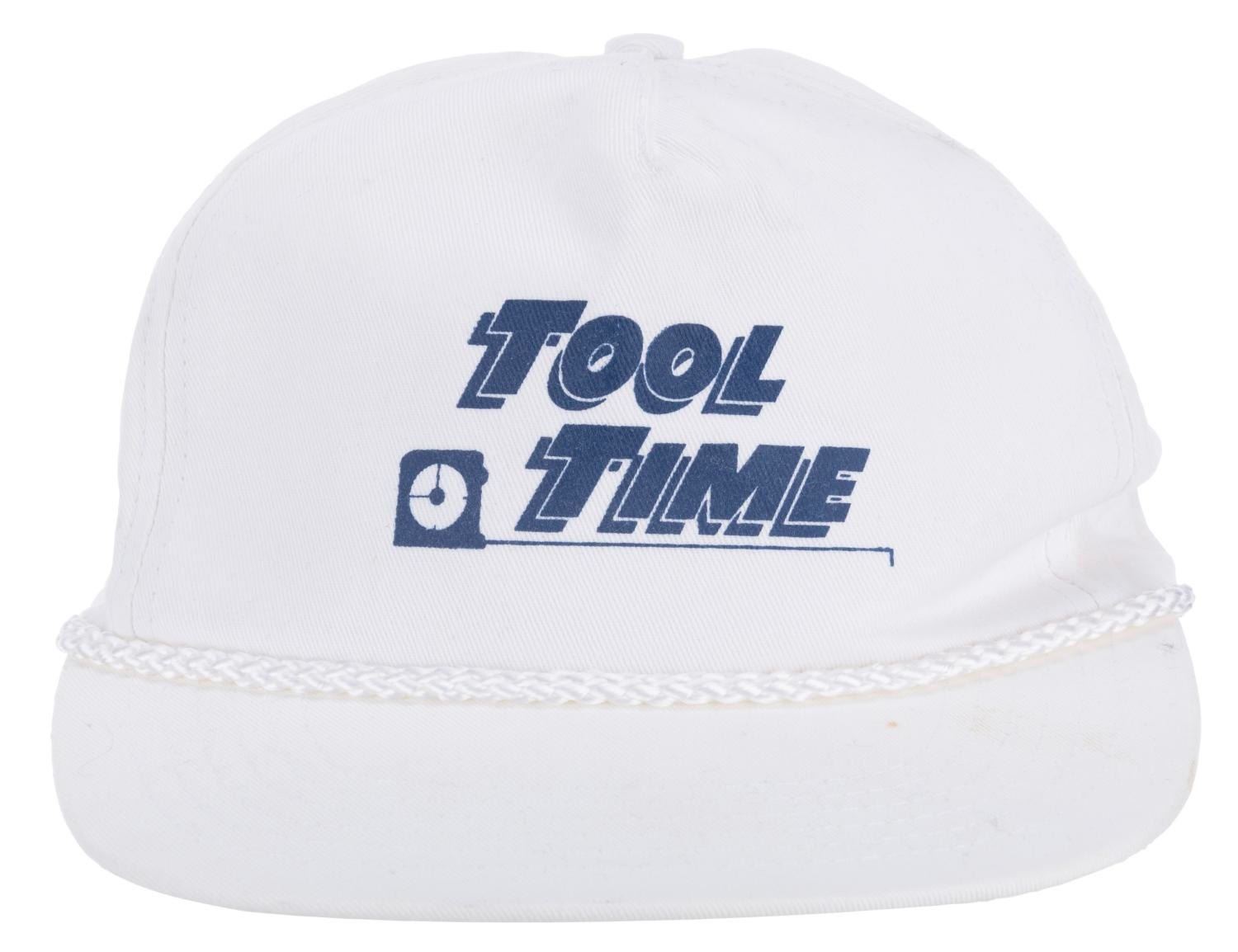 (ABC, 1999) A Tool Time hat worn by an audience member extra of the fictional program on Tim Allen’s hit television series “Home Improvement.” A section of the actual studio audience at Disney was designated as the “Tool Time” audience, and given wardrobe including this hat to appear as fans of Tim Taylor’s program. A one size fits most, the adjustable hat displays in very good condition with spots of discoloration on the brim.