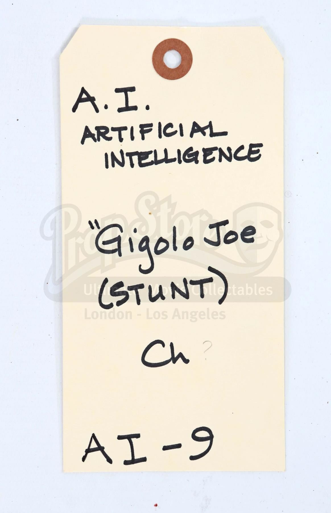 Gigolo Joe's stunt suit from Paramount Pictures' sci-fi epic A.I. Artificial Intelligence. A male Mecha prostitute, Gigolo Joe helped young Mecha David navigate the harsh world after David's "mother" abandoned him to save him from being taken back to his creators and destroyed.