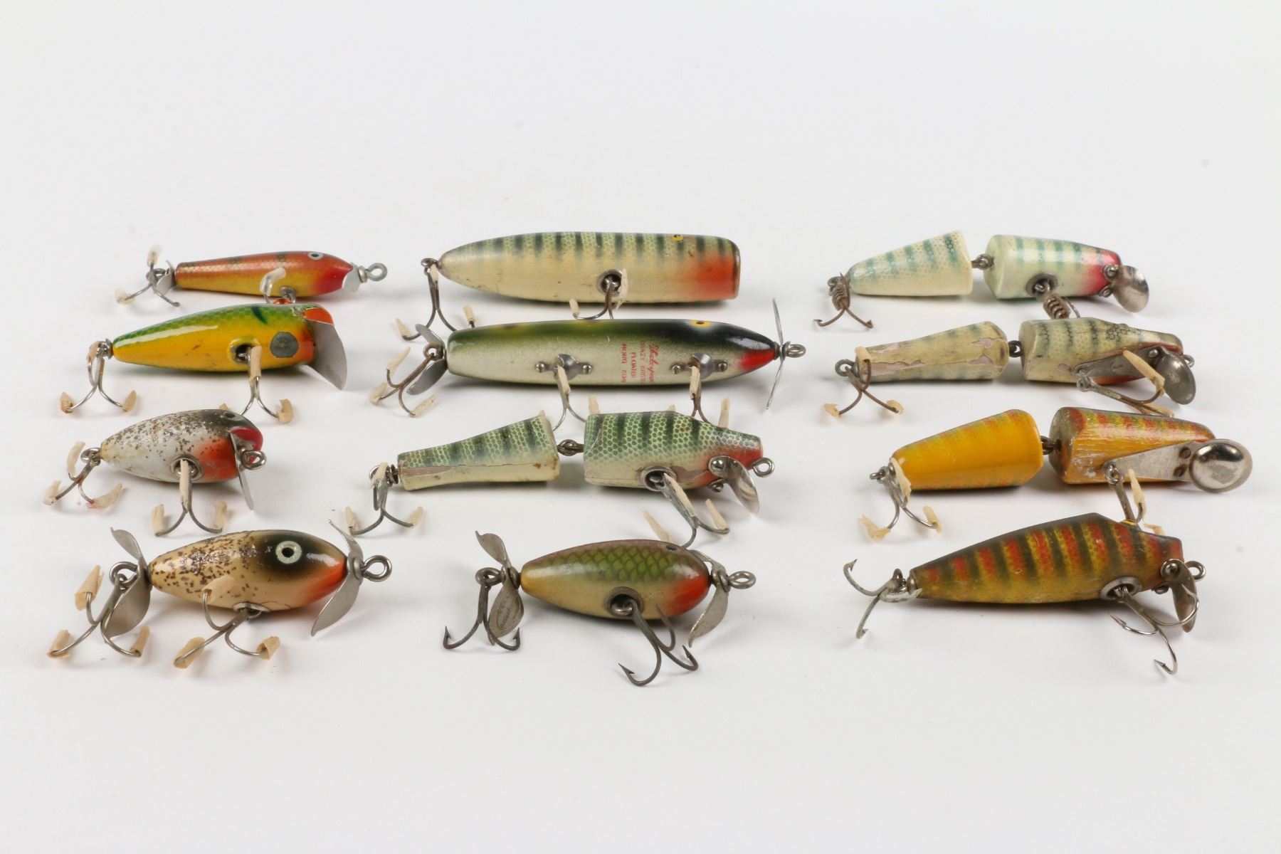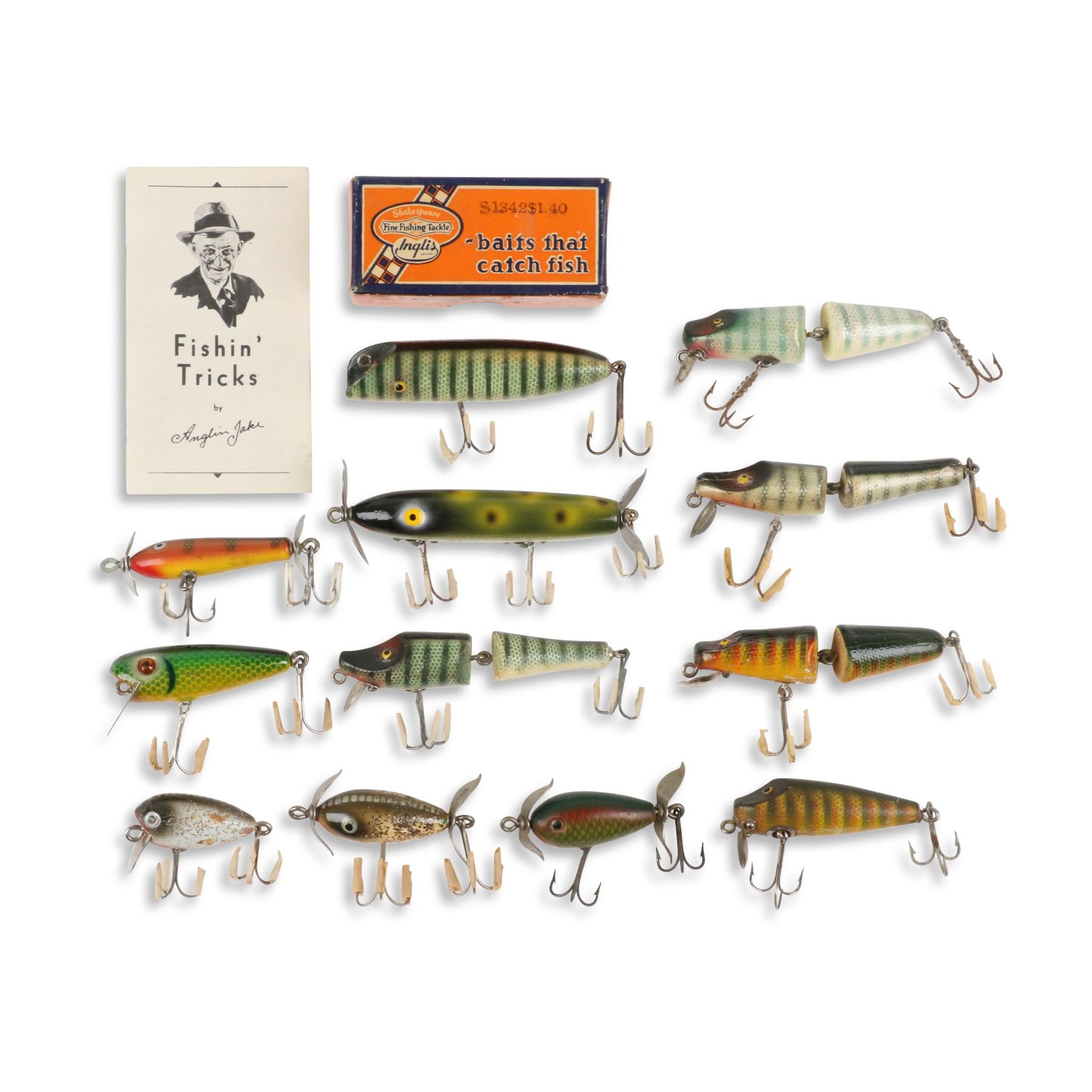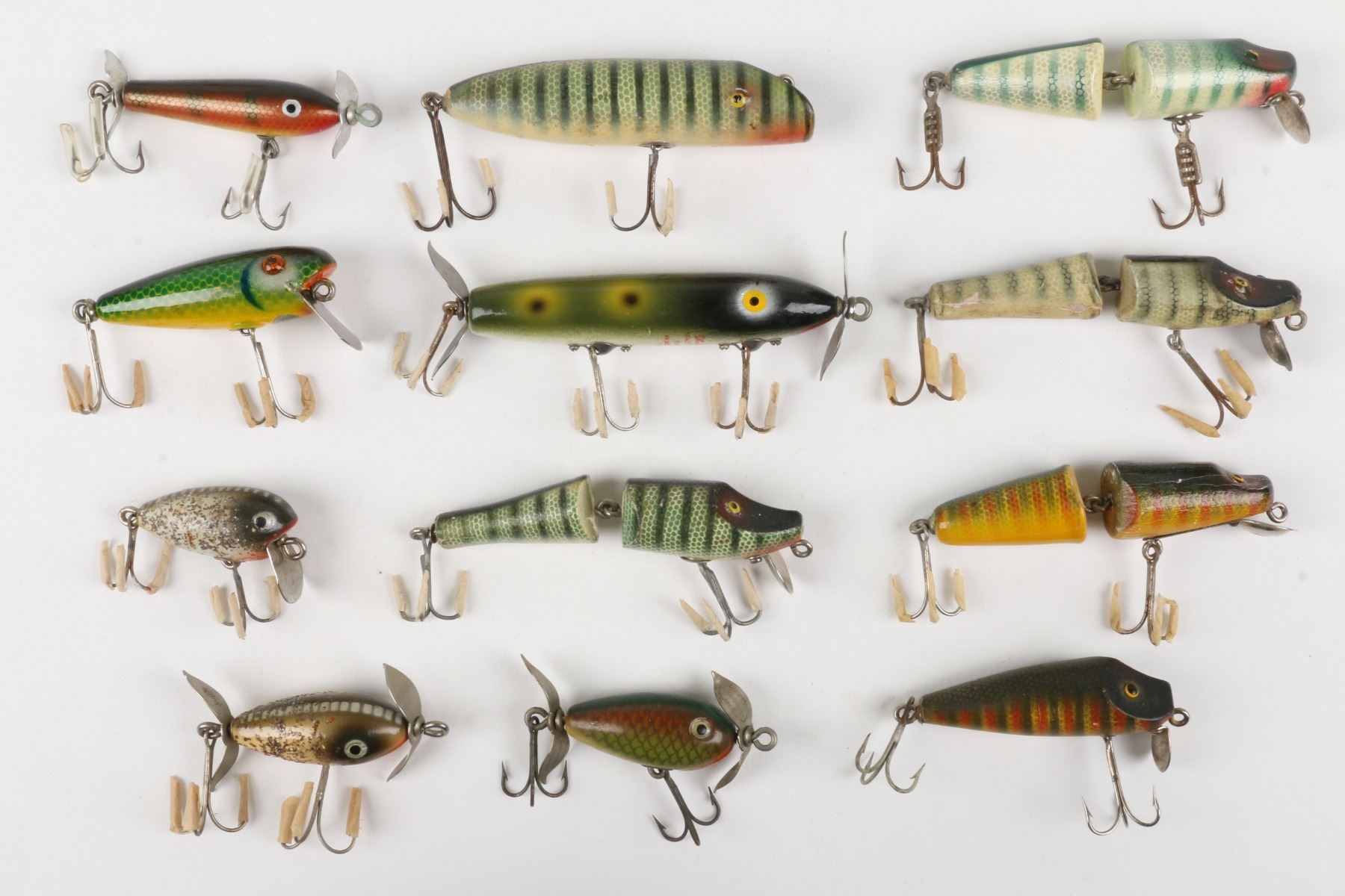 Unknowns and Shakespeare Fishing Tackle, United States. Material: Wood. Quantity: 12. Grade: G. 2" - 4" each. Est. $100-125.