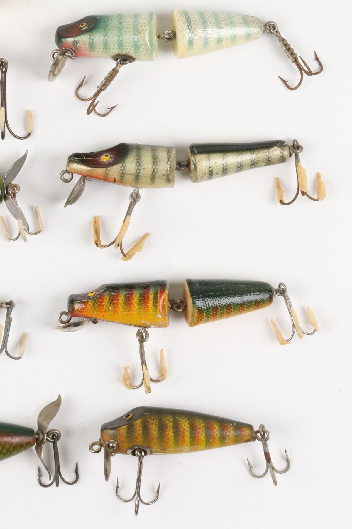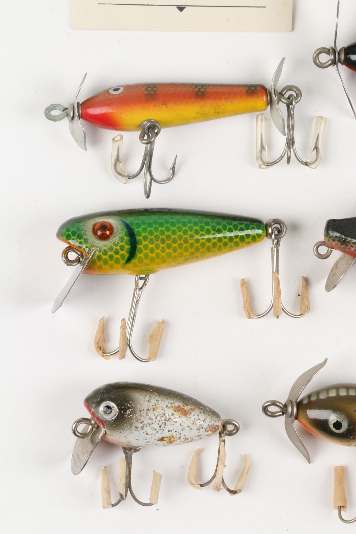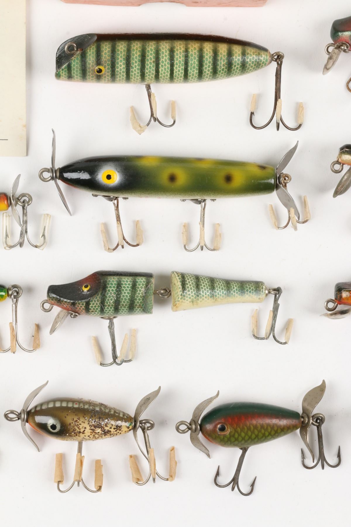Unknowns and Shakespeare Fishing Tackle, United States. Material: Wood. Quantity: 12. Grade: G. 2" - 4" each. Est. $100-125.