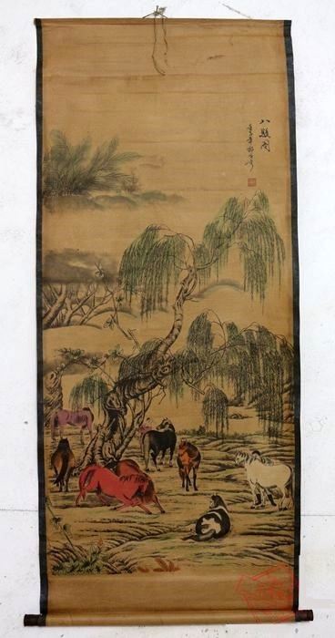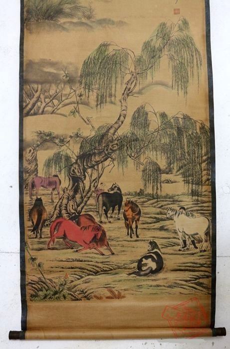 A INK & COLOR EIGHT-HORSE PAINTING QING DYNASTY.
