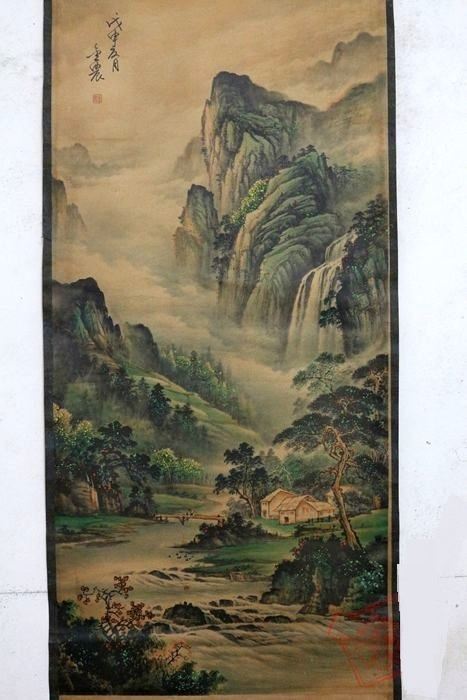 A INK & COLOR FAMILLE VERTE PAINTING.