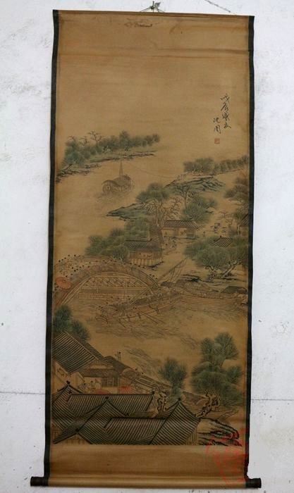 A INK & COLOR FAMILLE VERTE PAINTING.