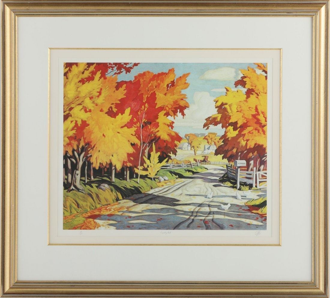 A.J. Casson's "Country Road" limited edition print, signed and numbered 178/250. This piece has been professionally double matted, and custom framed under glass. Image- 19" x 22". Frame- 32" x 35 1/2"