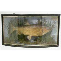 A J.Cooper & Sons taxidermic chub, in a glazed bow front case with naturalistic reed bed setting...