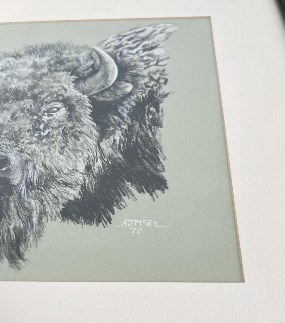 17 1/2" by 18 1/2" framed. A. J. (Jeanie) McCoy (20th century) was active/lived in Alberta / Canada. A McCoy is known for Wildlife painting.