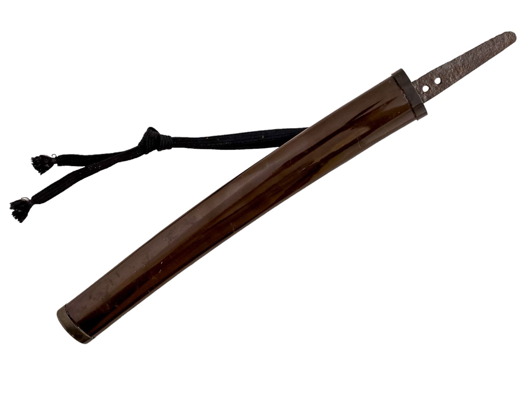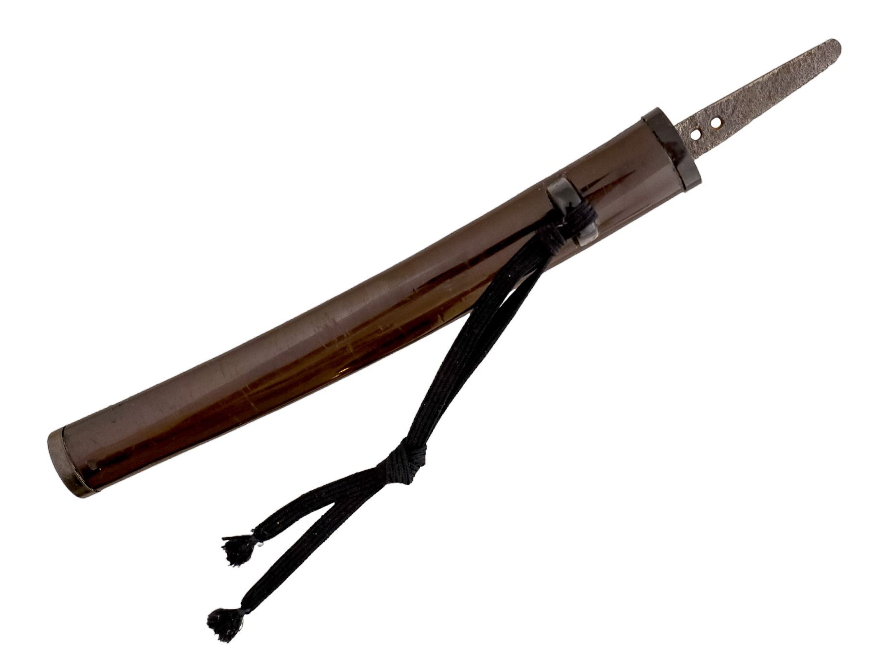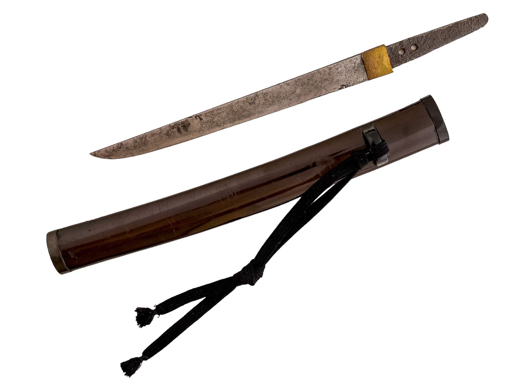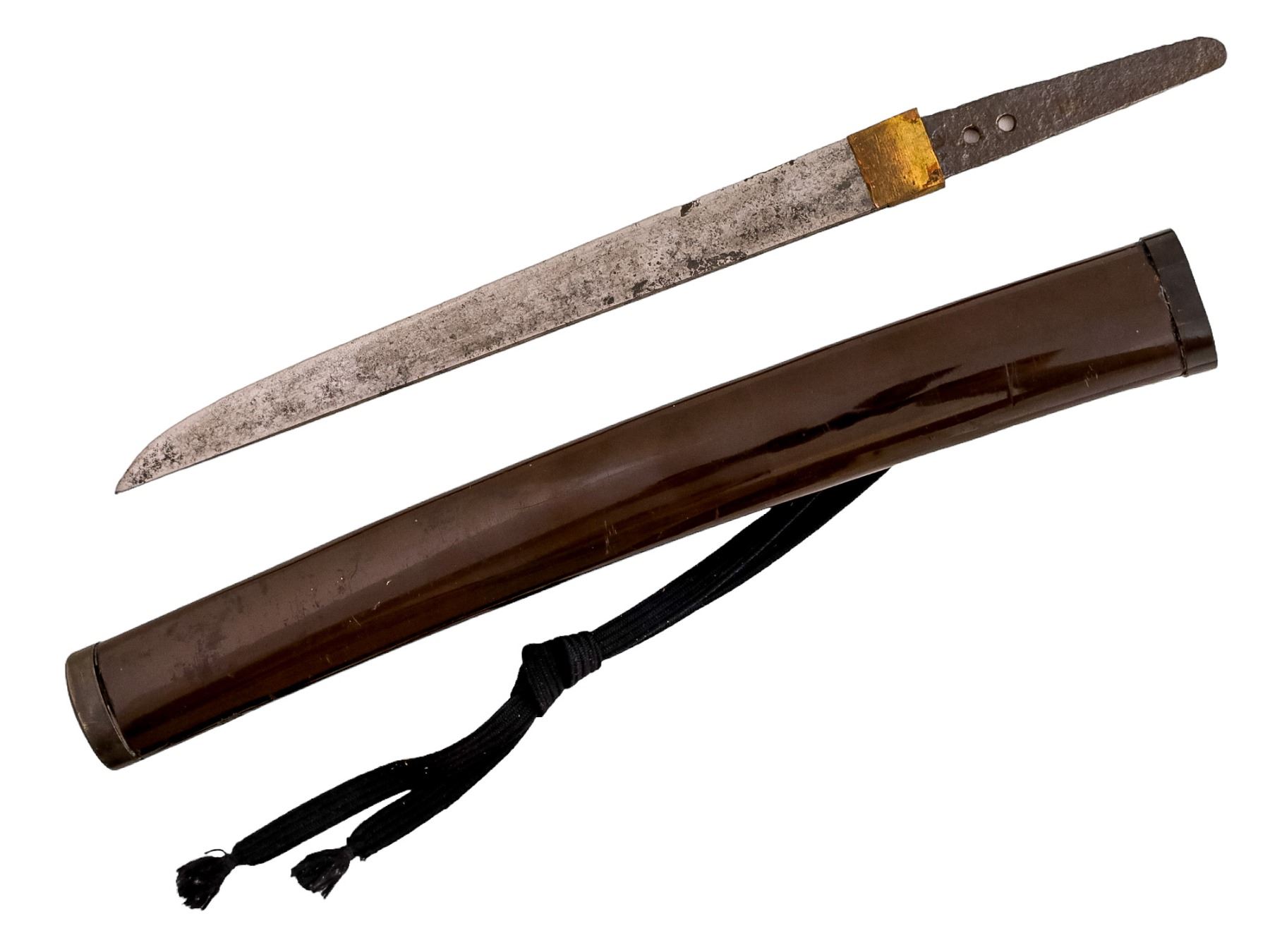 Edo Period tanto blade and lacquered saya. The blade requires polishing. Sold as is.