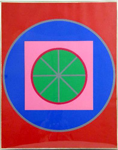 Unsigned; being a brightly-colored geometric. 27"h x 21 1/2"w