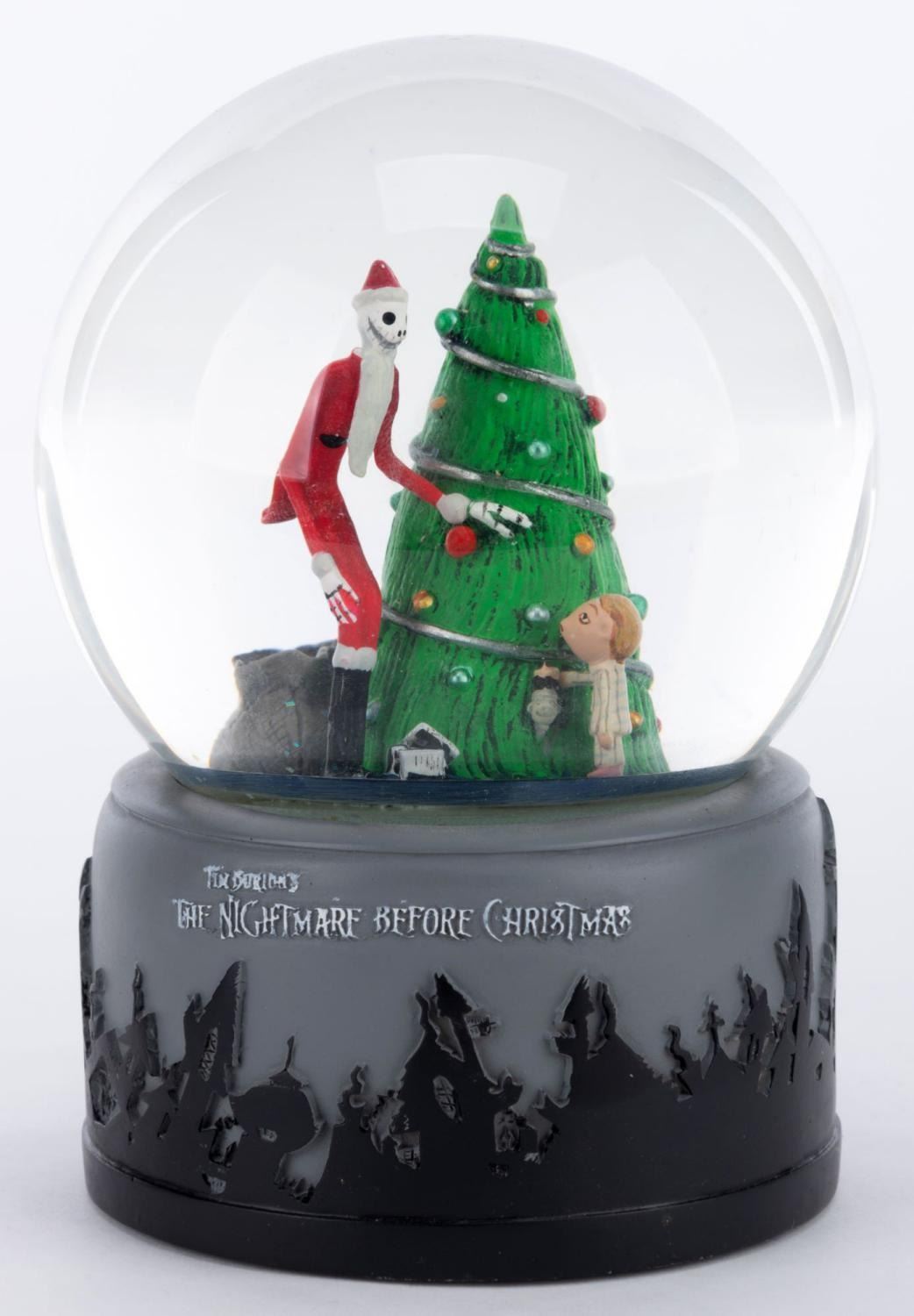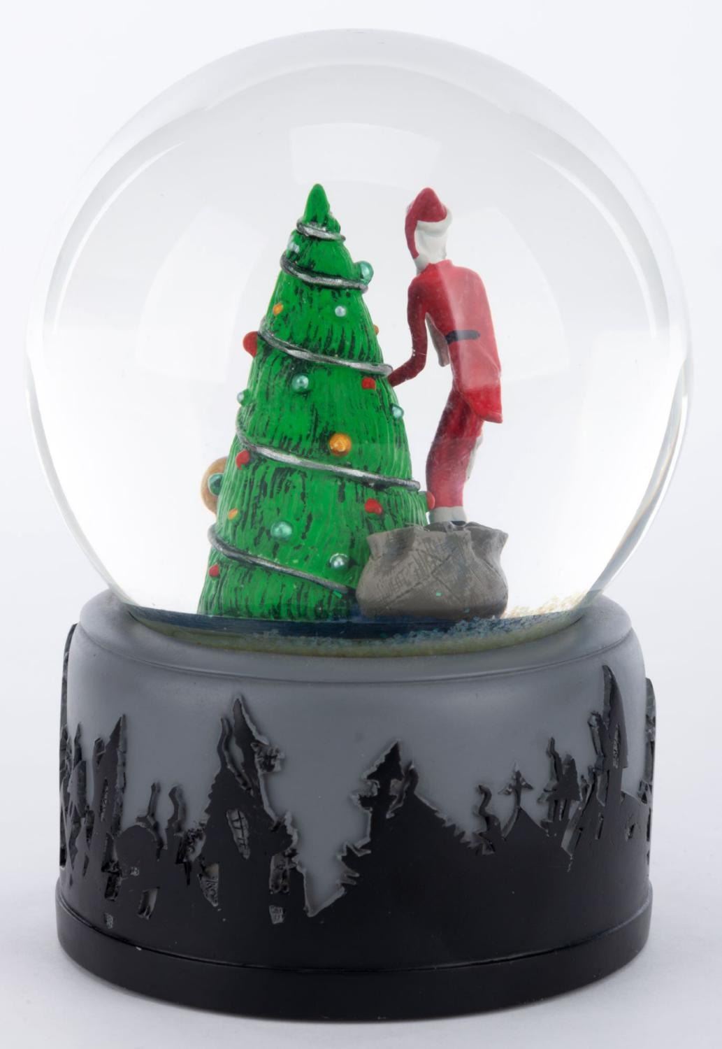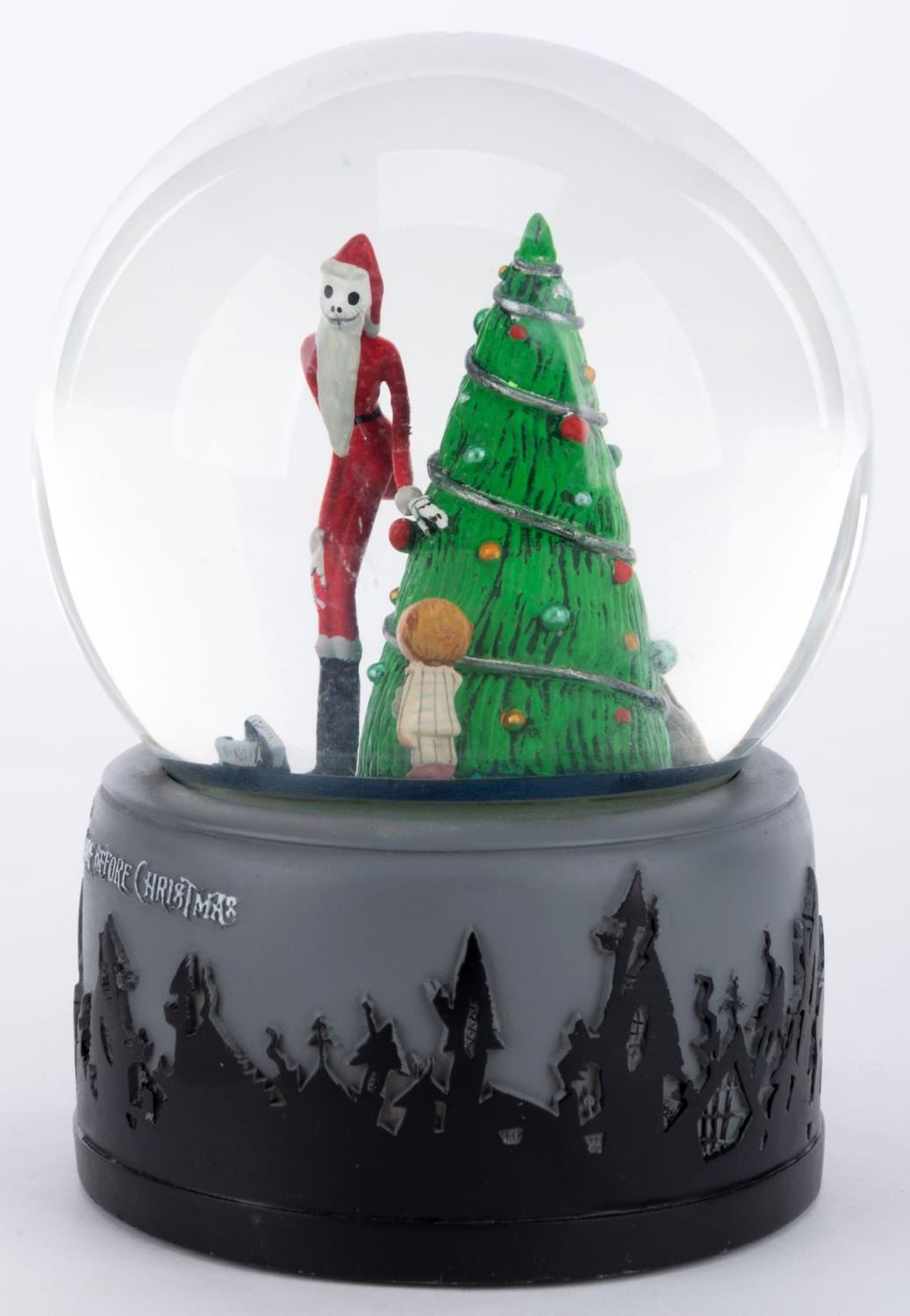 (NECA, 2011) A snow globe with Jack Skellington as "Sandy Claws" and Timmy from "Tim Burton's The Nightmare Before Christmas." Measuring 4" in diameter and 5.5" tall, the hand-painted snow globe is in fine condition and comes with the original 6" x 5.25" x 7" box.