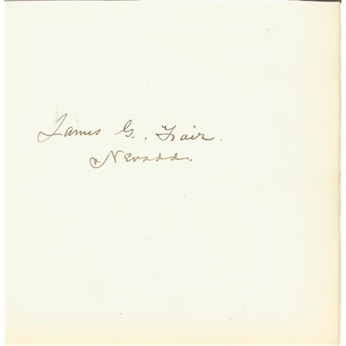 JAMES G. FAIR S. 1pp. n.p. n.d. A signature "James G. Fair Nevada" on an album page while Senator. It has dark ink and is in very fine condition.