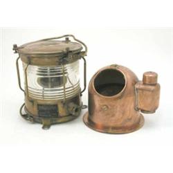 A Japanese nautical brass signal light, 9.5ins and a ship's compass with copper casing with incorporated oil lamp, 7.5ins £100-150