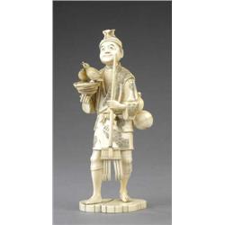 A Japanese segmental ivory figure of a gardener, - A Japanese segmental ivory figure of a garden...