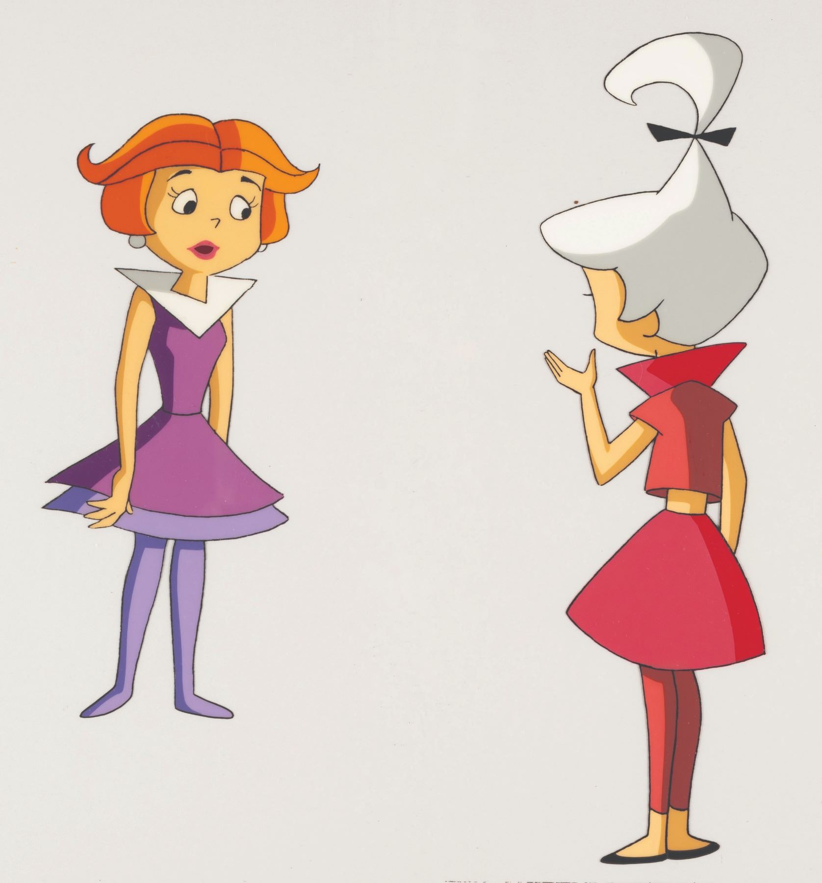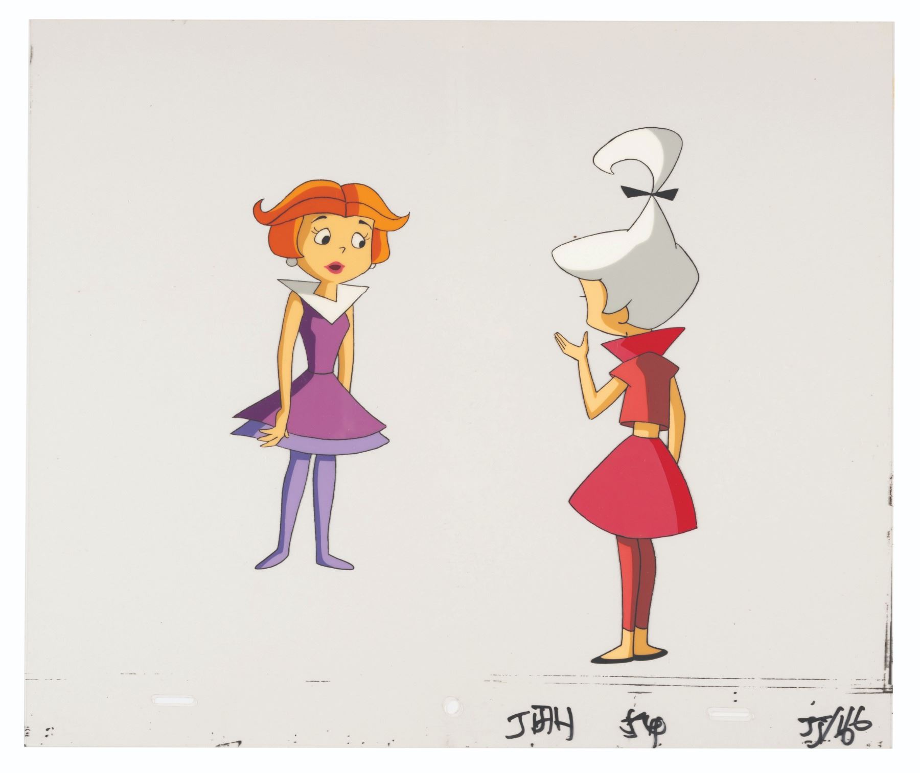 (Hanna-Barbera, 1990) An original multi-layer production cel from “The Jetsons Movie” featuring Jane and Judy. Measuring 10.5” x 12.5” with a character image size of 8” x 7”, the cel is in fine production-used condition.