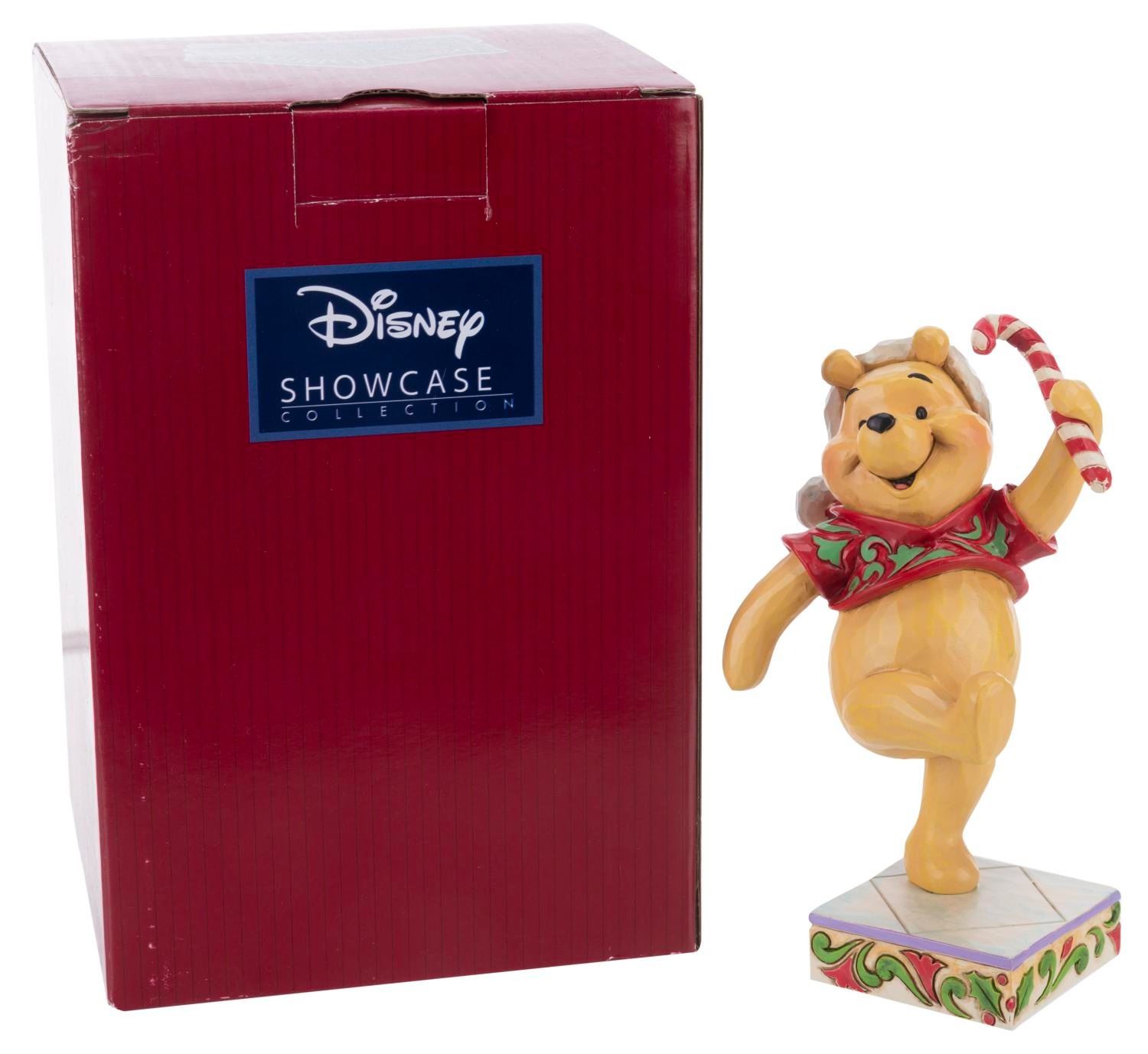 (Enesco, 2000s) A Disney Traditions figurine of Winnie the Pooh titled"Christmas Sweetie." The resin holiday figurine was designed by Jim Shore and released by the Disney Showcase Collection. Standing 6" tall the figure is in fine condition with the original box.