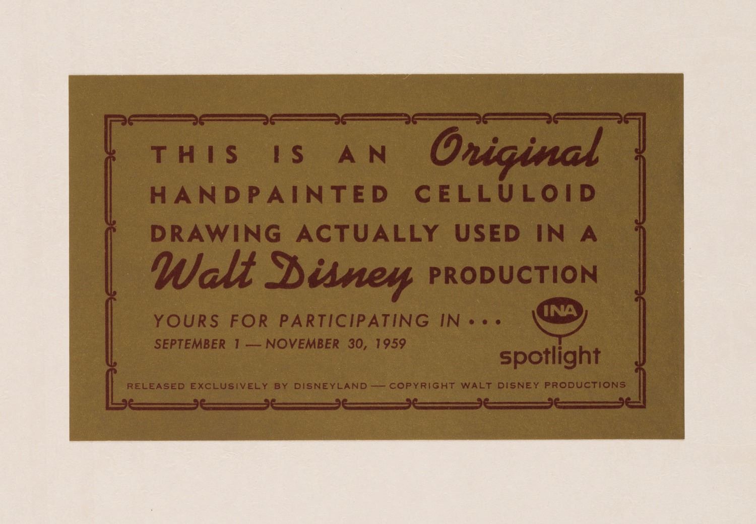 Van Eaton Galleries will hold a public exhibition at a special pop-up location at the Burbank Town Center Mall. We hope you can join us Wednesday through Sunday, June 28 - July 16, 11am-7pm. The exhibit is at 501 E Magnolia Blvd, Burbank, CA 91502 and the entrance is outside, near the West Garage. For more information, please visit vegalleries.com/thedisneylandauction