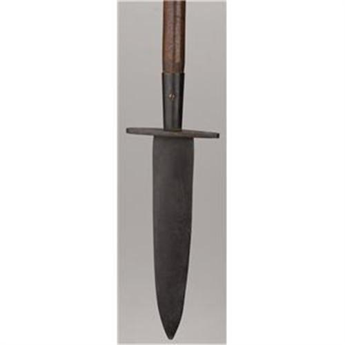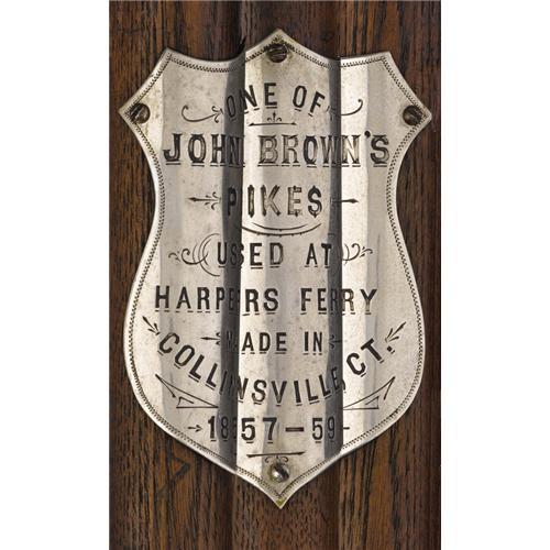 <B>A 'John Brown Pike' Used at the Harper's Ferry Raid, Serial Number 846</B></I> This 80" pike was used at the famed Harper's Ferry Raid executed by abolitionist John Brown and his party of 18 men. Brown, a native of Connecticut, became an ardent abolitionist from early in life being raised by a highly religious, anti-slavery family. Having first been trained in the ministry, he became involved in the tannery business, traveled to Kansas to assist the anti-slavery movement and became a violent abolitionist, ultimately organizing his ill-fated raid on the Harper's Ferry, Virginia Armory which resulted in his wounding, capture and execution. It was during the preparation for this raid that he ordered these pikes from his native Connecticut. At 80" long, they are wooden spear-like weapons tipped with a 10" blade and were used to subdue the minimal force guarding the armory, after which Brown's forces seized their rifles and barricaded themselves inside.<BR>This John Brown pike actually was used at the raid by Brown's forces, all of whom were either killed or captured as the raid was put down by then-Colonel Robert E. Lee and Lieutenant J. E. B. Stuart who, along with 90 Marines, stormed the armory. A silver commemorative plaque has been affixed to the pike at 6" down from the blade on the wooden shaft as follows: <I>One of John Brown's Pikes Used at Harpers Ferry, Made in Collinsville, Ct., 1857-1859.</B></I> The metal haft on the pike itself is numbered '846' and is in very good condition as is the wood which is of a very nice grain and completely intact.<BR> This is a very rare weapon used at one of the most significant events in American history that sparked the outbreak of the Civil War.<BR><BR> <B>Provenance:</B></I> <I>Norm Flayderman,The Tharpe Collection of American Military History</B></I><BR> <BR><B>Exhibited:</B></I> <I>The Liberty Heritage Society Museum</B></I><BR><BR><b>Shipping:</b> Requires 3rd Party Shipping (<a target="_blank" href="http://www.heritageauctions.com/common/shipping.php">view shipping information</a>)
