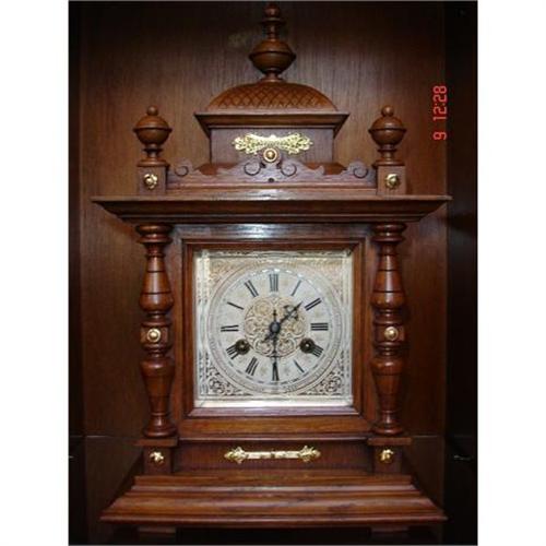 A German Oak, gilt-metal Junghans table clock from period 1910.