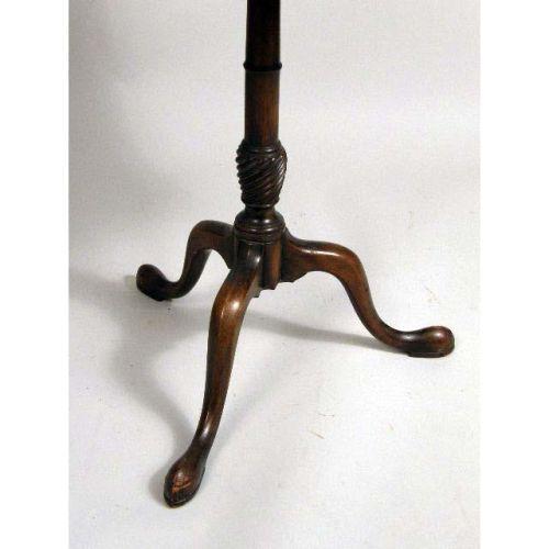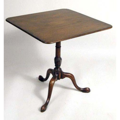 A KITTINGER GEORGE III-STYLE CARVED MAHOGANY TEA TABLE<BR><BR>The underside stamped "Colonial Williamsburg Restoration/Kittinger," repair to base of standard, 28"h x 26"w x 25-1/2"d