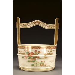 A KYOTO WARE VESSEL, of water bucket form, well painted with peonies and chrysanthemums., ht. 8.9...