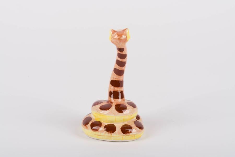 (Enesco, 1960s-70s) A ceramic figurine of Kaa from"The Jungle Book." Measuring 2.75" x 2.75" and 4.75" tall, the figurine is in very good condition.