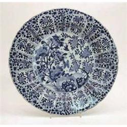 A Kang Hsi blue and white plate with dense foliate decoration, leaf mark 13ins £150-200