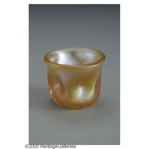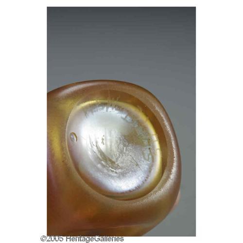 <B>An American Glass Toothpick</B></I><BR>Kew-Blas, c.1920<BR><BR>The iridescent amber pinched toothpick, marked underside <I>KEW-BLAS</B></I><BR>2.1in. high <BR><BR><B>Important notic